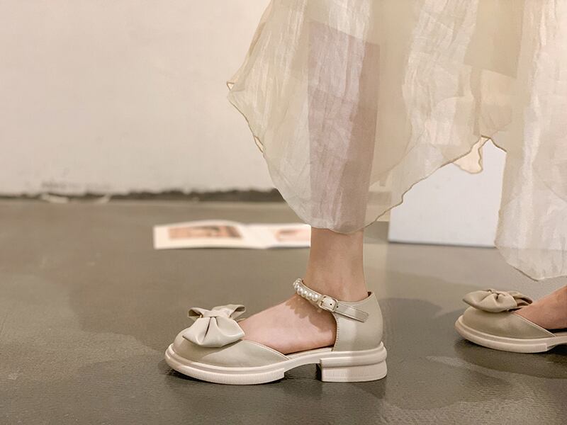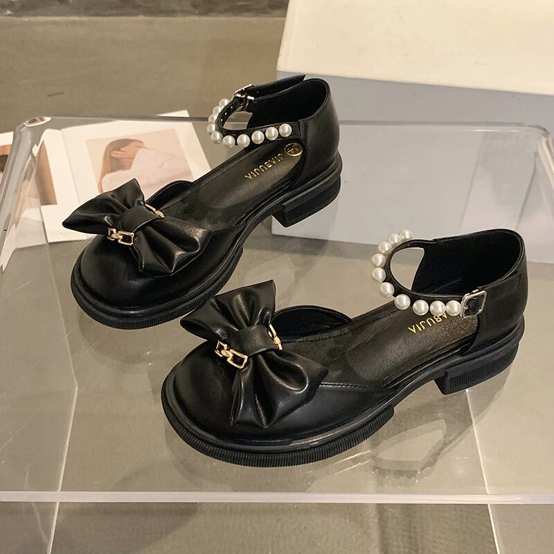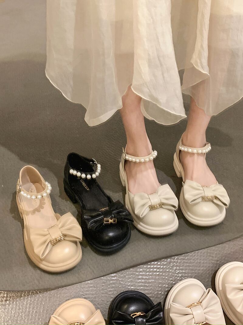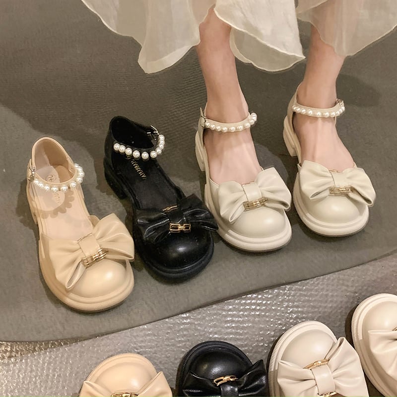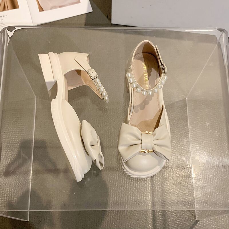 メリージェーンの靴の女性の2022年夏の新しいファッションオールマッチパールボウバックルミドルヒール滑り止めの小さな革の靴 シューズ リボン サマー 夏物 レザー 真珠 jxjxf19412287209