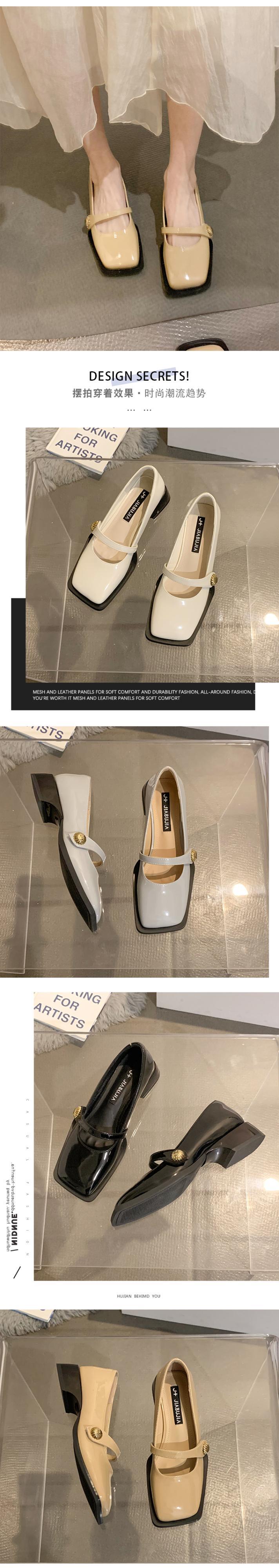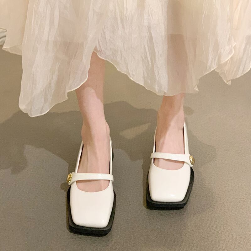 ネットレッドシングルシューズレディース春2022新しいファッションオールマッチスクエアヘッド浅い口ベルクロローヒール滑り止めスモールレザーシューズ 靴 スプリング 春物 スクウェア jxjxf13871166150
