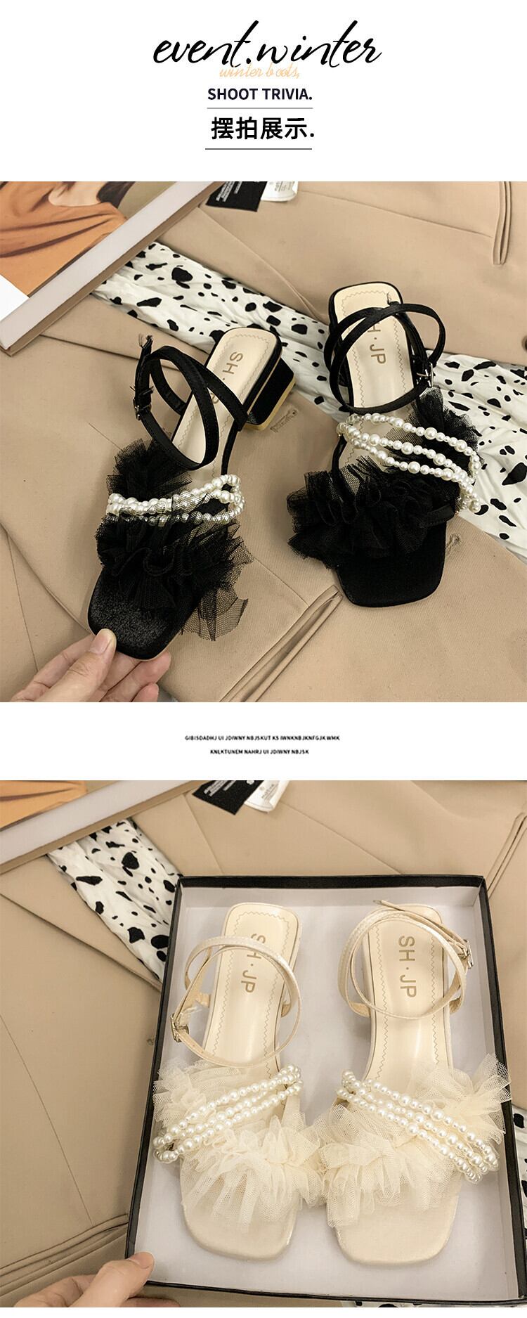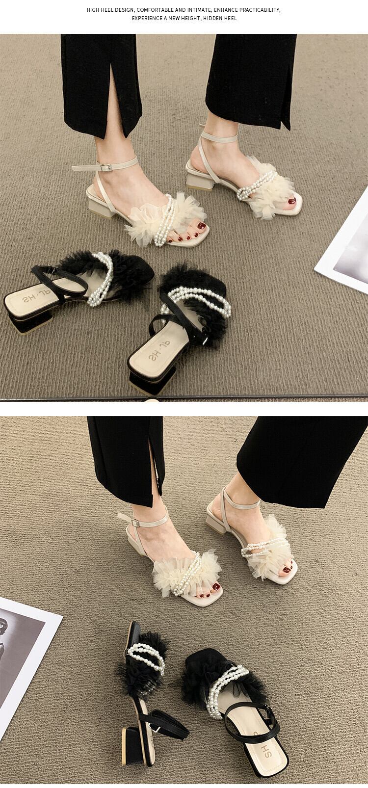 ローマの靴の女性の2022年夏の新しい真珠のミッドヒールノンスリップネットレッドファッションオールマッチフェアリースタイルのレトロなサンダル シューズ サマー 夏物 パール jxjxf49474329537