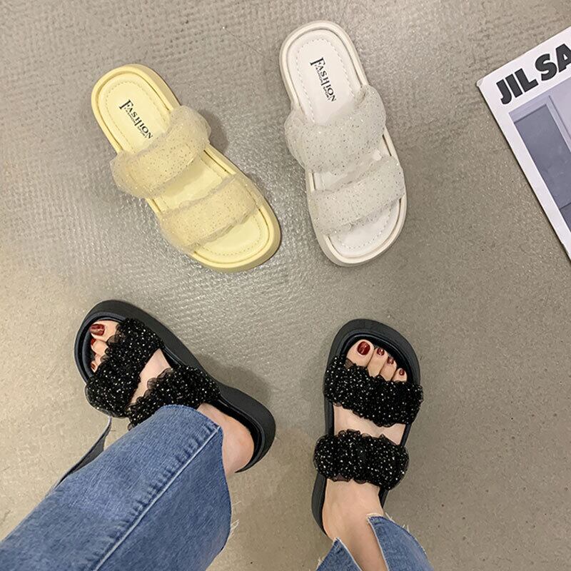 2022年夏に外で履くスリッパ女性、新しいネットレッドスーパーオールマッチスモールシックボトム滑り止めワンワードサンダルとスリッパ ミュール 靴 シューズ サマー 夏物 スリッポン jxjxf90354987509