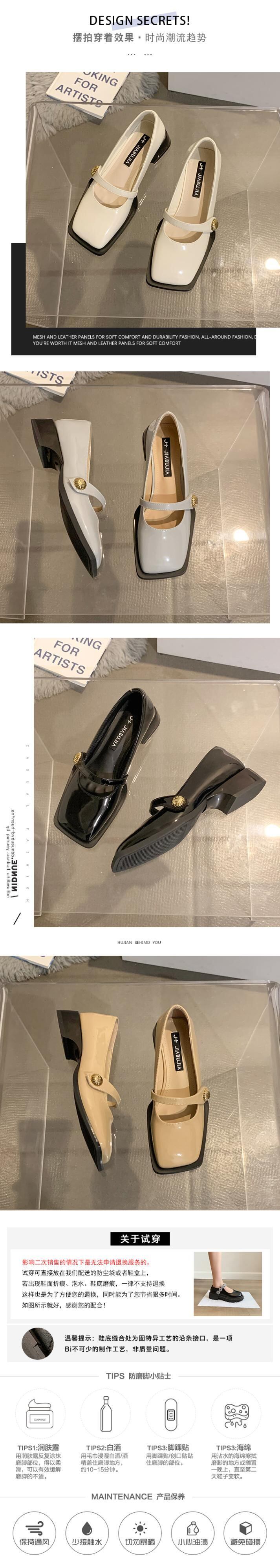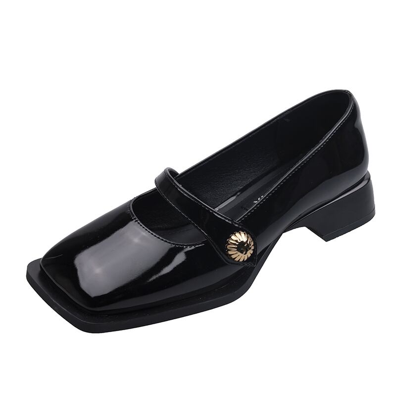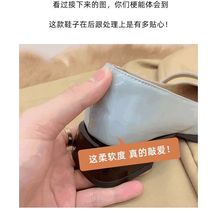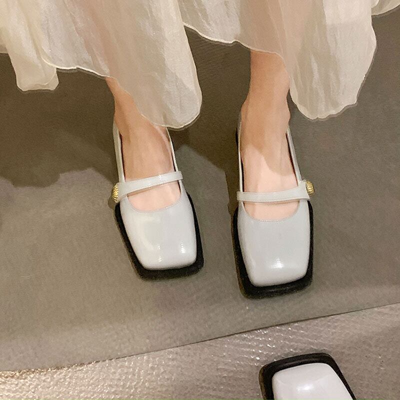 スクエアトゥシングルシューズ2022年春の女性の新しいスーパーオールマッチレトロ浅いベルクロローヒール滑り止めの小さな革の靴 スプリング 春物 レザー スクウェア jxjxf77674594143