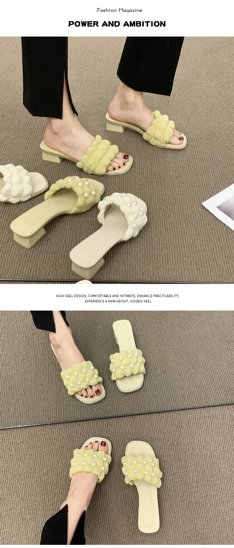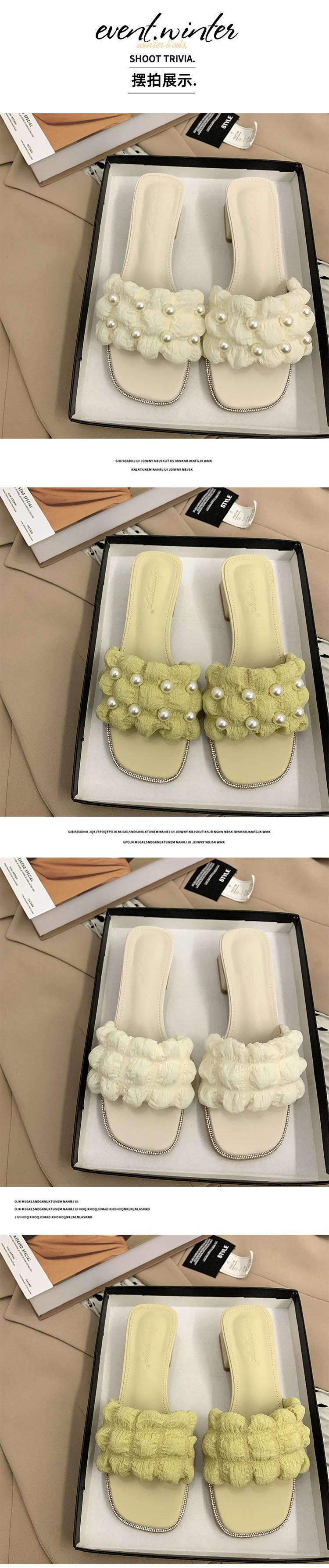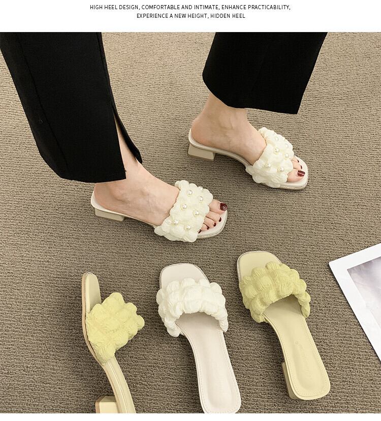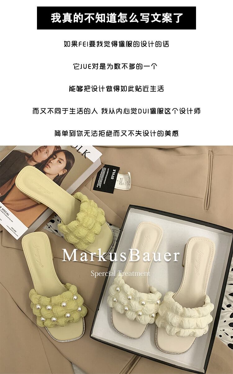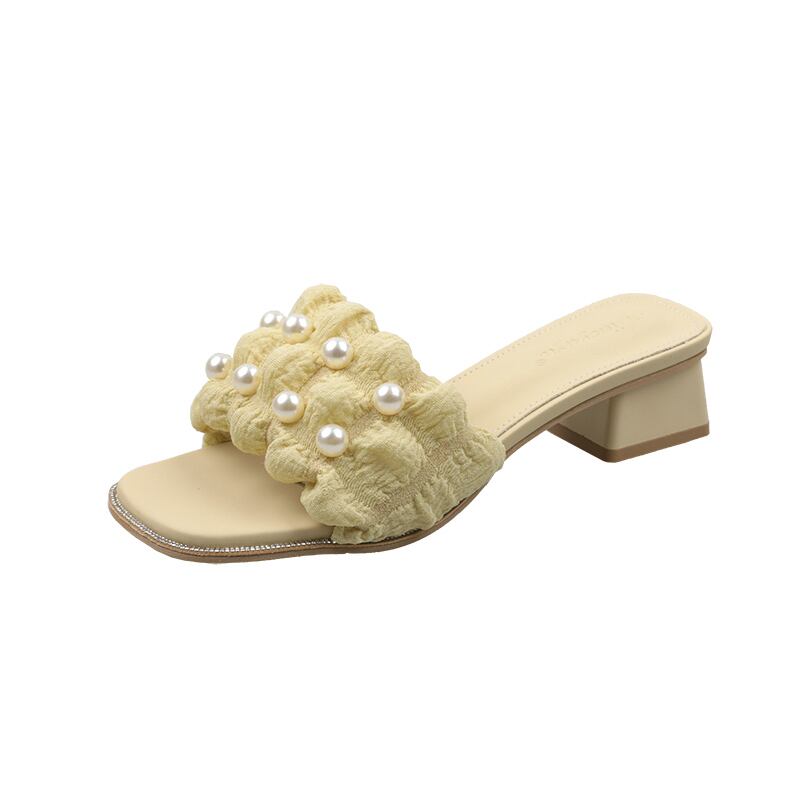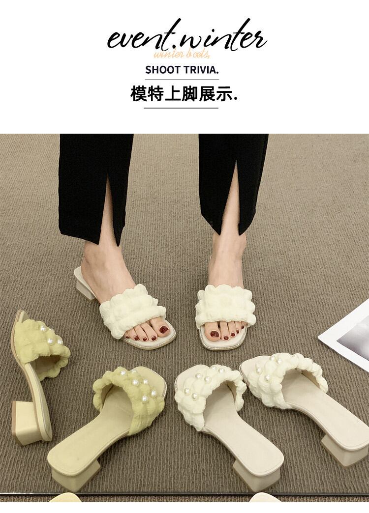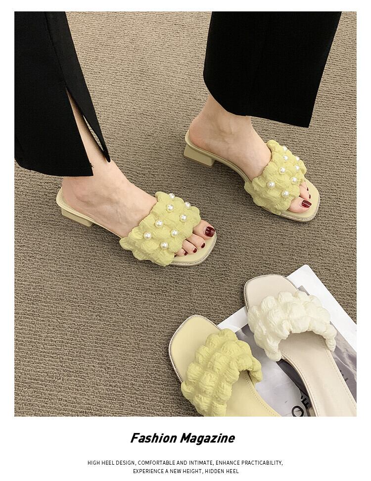スリッパ2022年夏レディース新作アウターネットレッドスーパーオールマッチレトロパール厚手のヒール滑り止め一言サンダルとスリッパ ミュール 靴 シューズ サマー 夏物 スリッポン 真珠 jxjxf15053355952