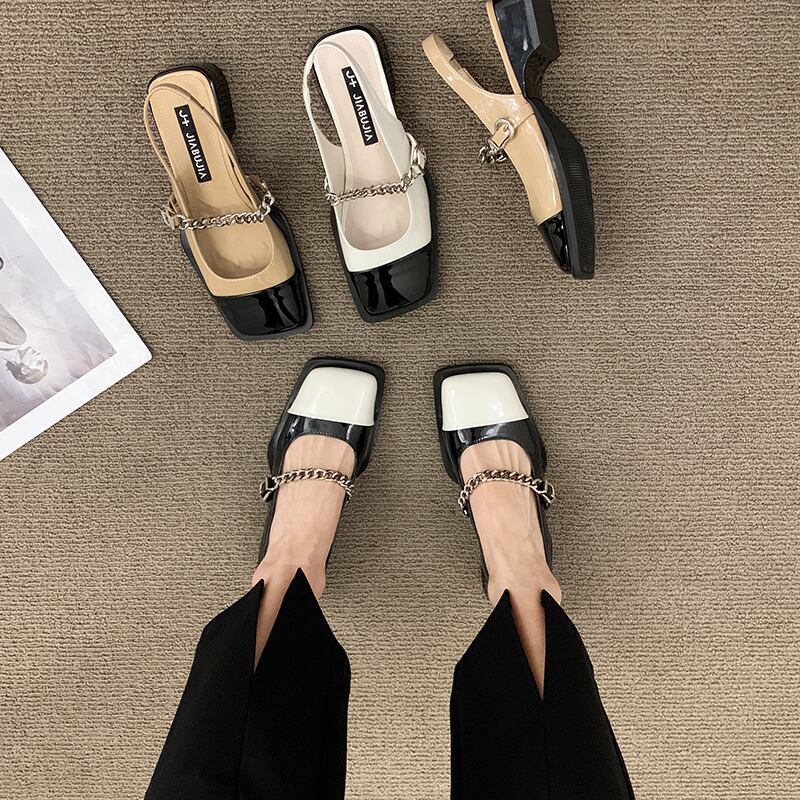 ネットレッド包頭サンダルレディース2022夏ニューチェーンローヒール滑り止めスーパーファッションオールマッチレトロスモールレザーシューズ 靴 サマー 夏物 jxjxf67767286262