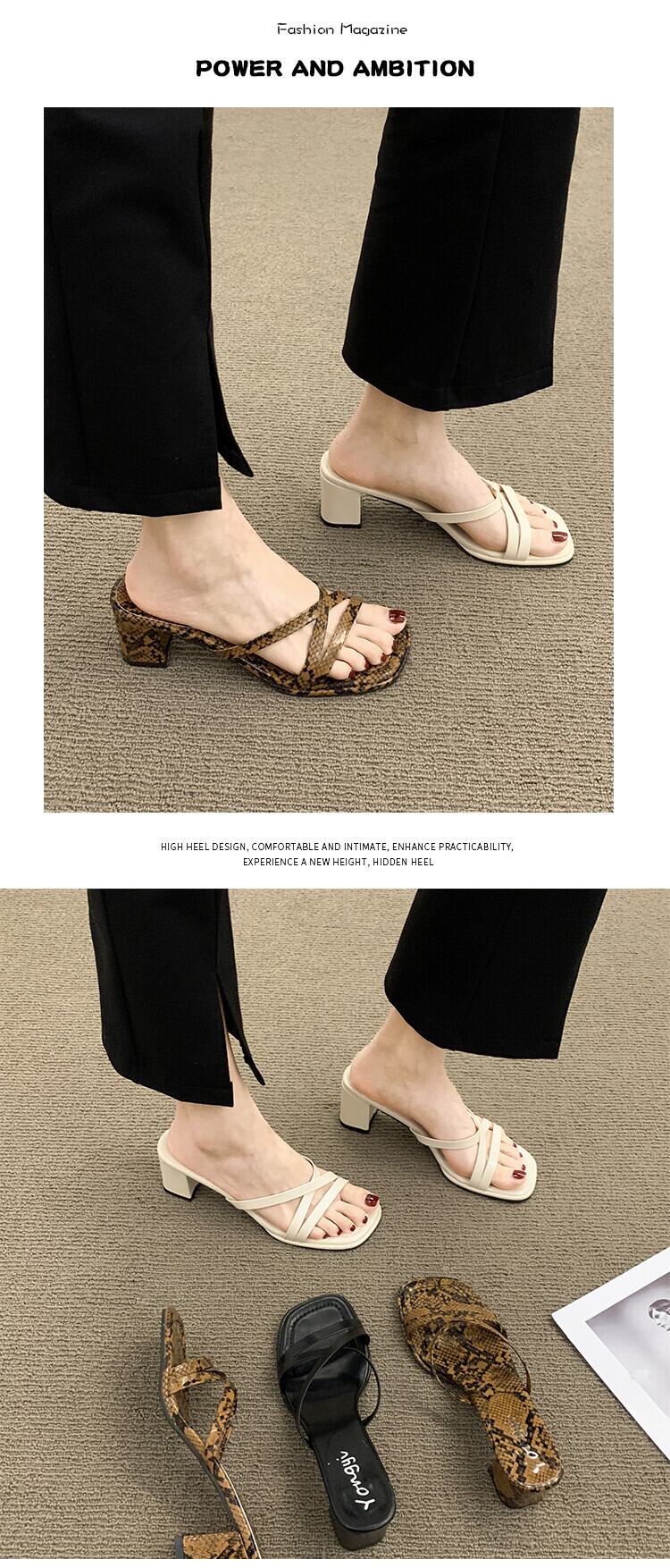 スリッパ2022年夏新しいファッションオールマッチ小さなレトロな厚いヒール滑り止めサンダルとスリッパinstide ミュール 靴 シューズ サマー 夏物 jxjxf60916855592