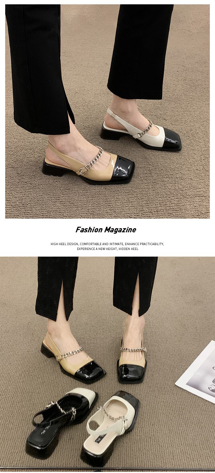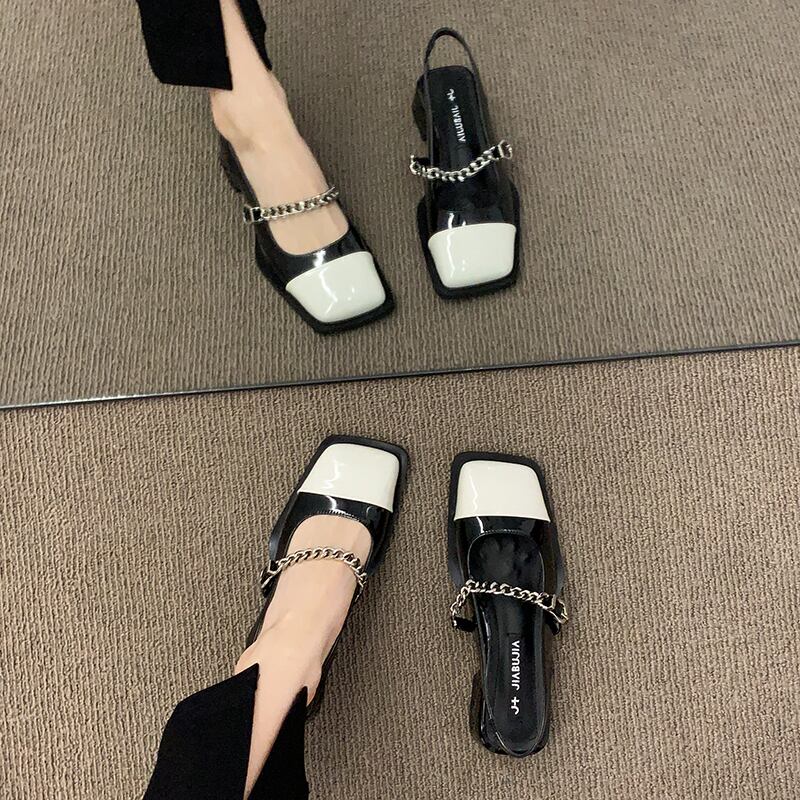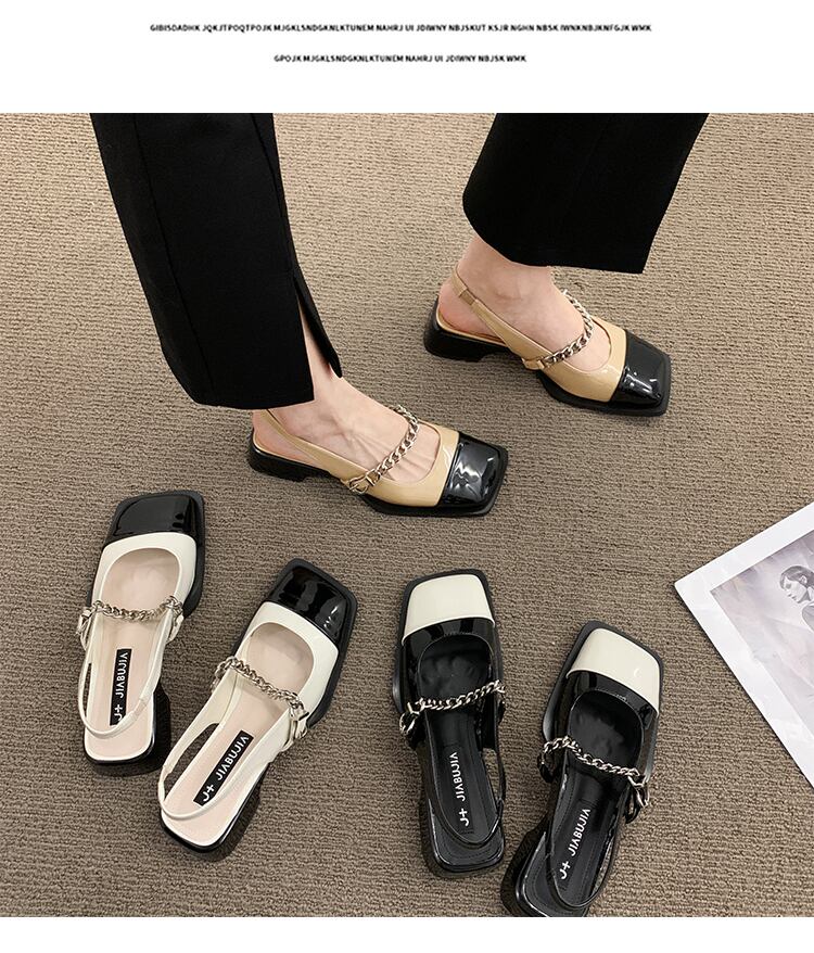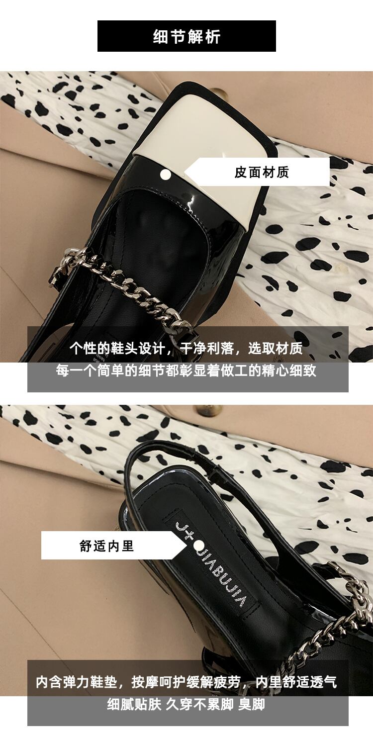 包頭サンダルレディース2022夏の新しいファッションオールマッチメタルチェーンローヒール滑り止めの小さな革の靴の潮流 シューズ サマー 夏物 レザー jxjxf15261314761