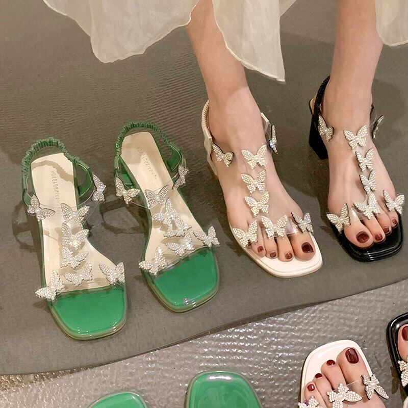 ネットレッドサンダルレディース2022夏の新しいラインストーンの厚いヒール滑り止めのファッションオールマッチフェアリースタイルのローマのハイヒール 靴 シューズ サマー 夏物 jxjxf27556564195