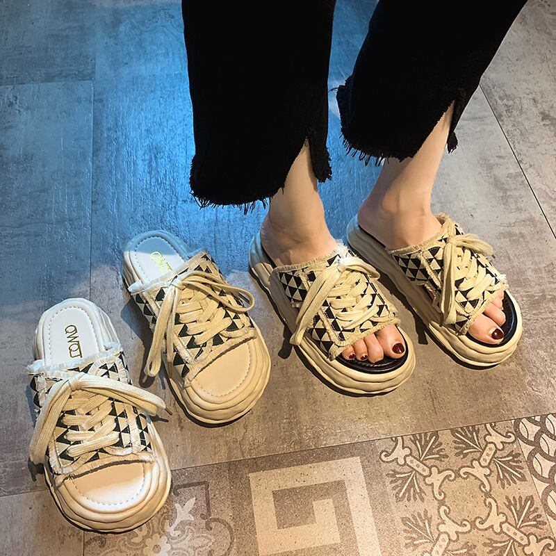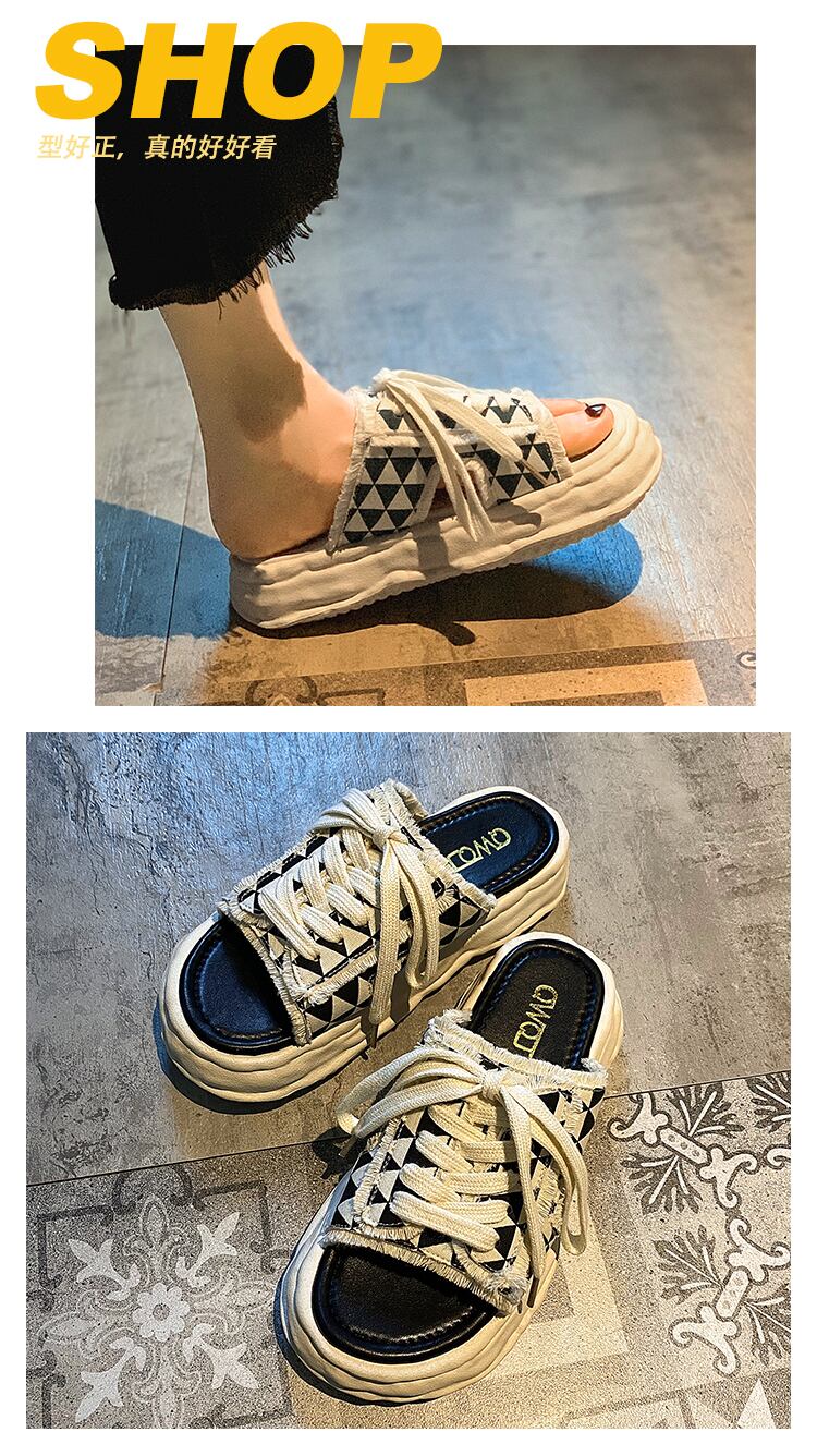 スリッパ女性の2022年夏の新しいファッションオールマッチレースアップ厚底ノンスリップディゾルブサンダルとスリッパインタイド ミュール 靴 シューズ サマー 夏物 jxjxf14067069473