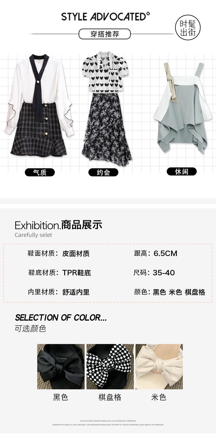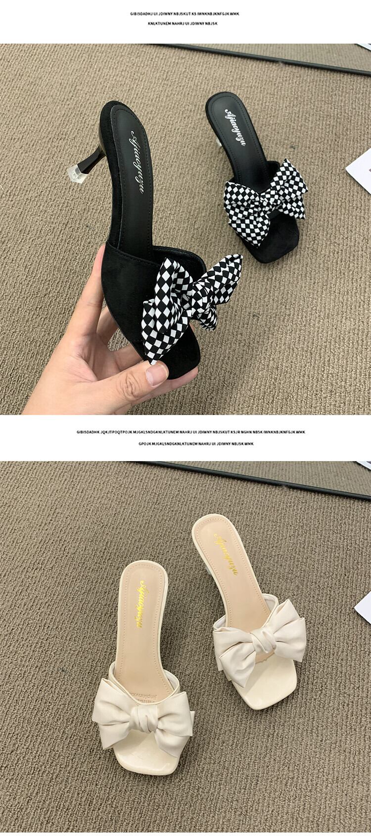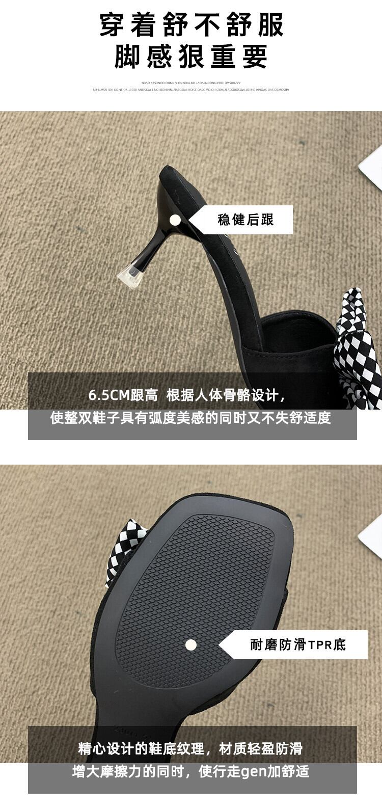ワンワードビーチサンダル女性の2022年夏の新しいチェッカーボードボウスティレットファッションオールマッチフェアリースタイルスリッパ リボン ミュール 靴 シューズ サマー 夏物 jxjxf31630603841