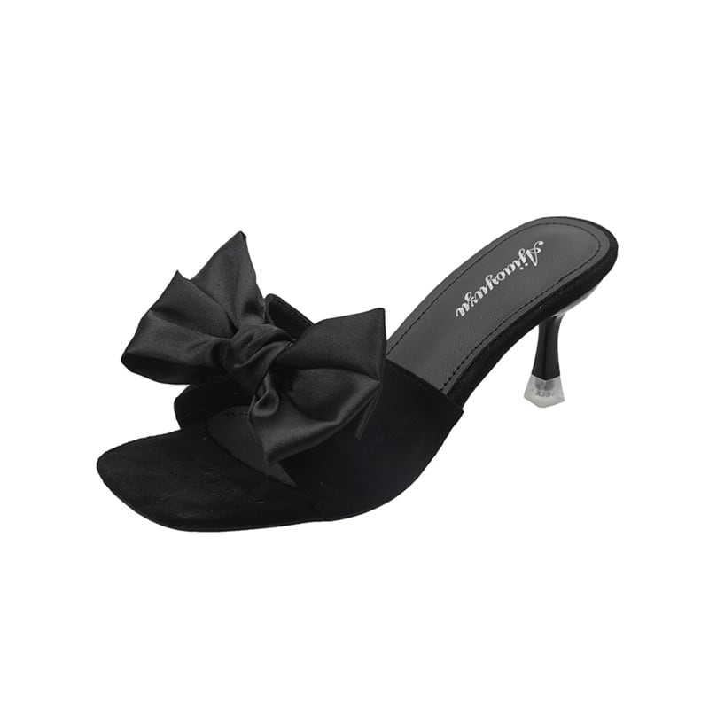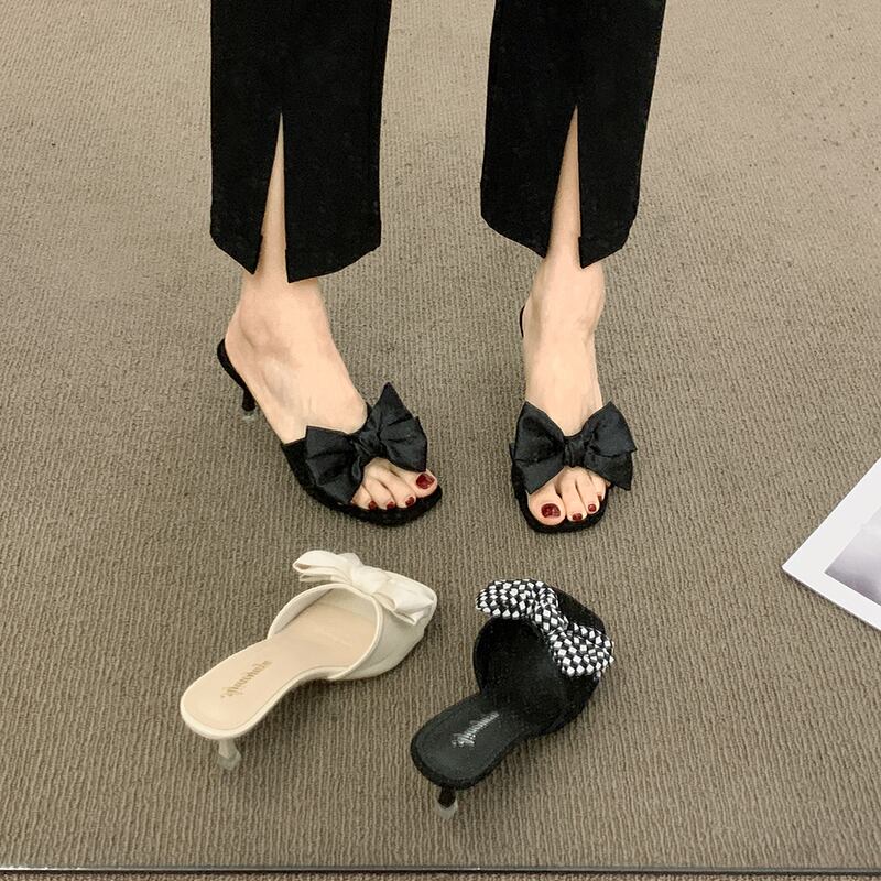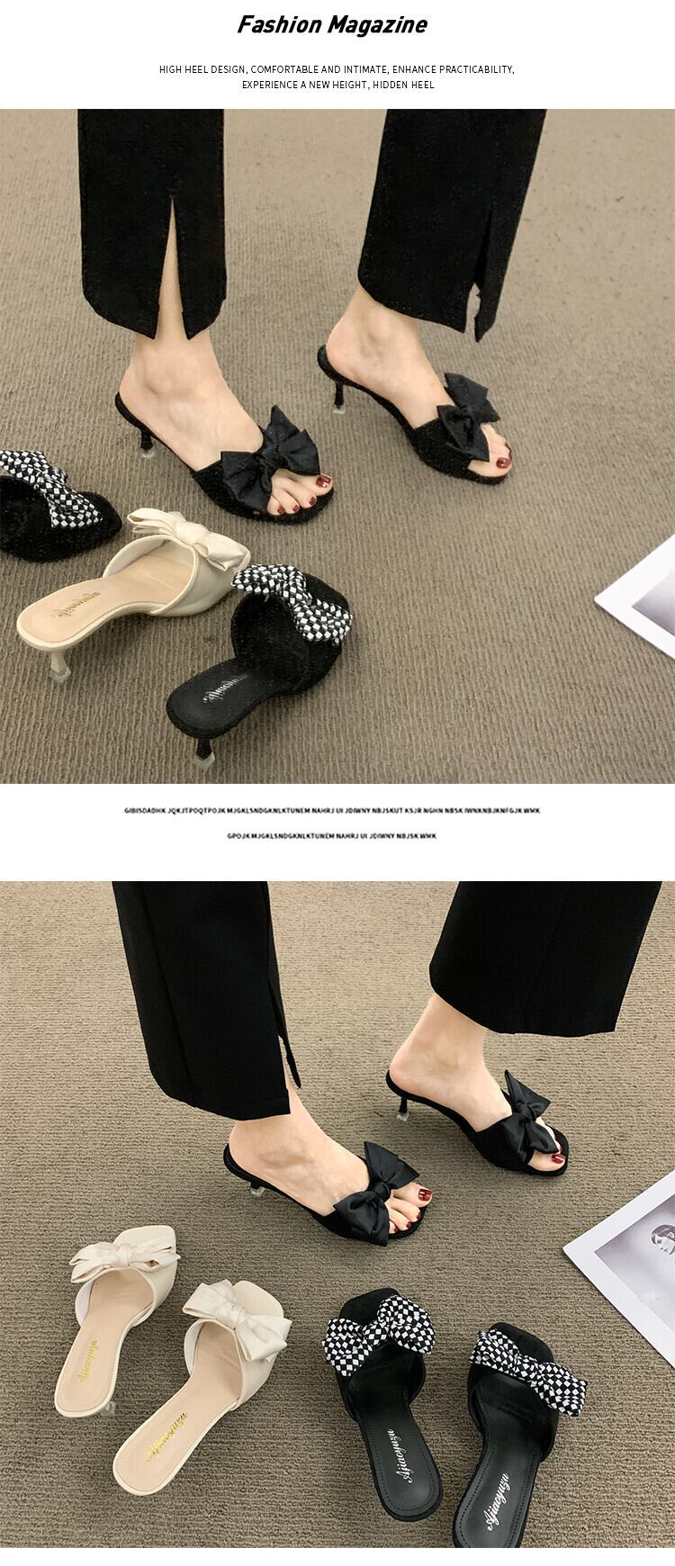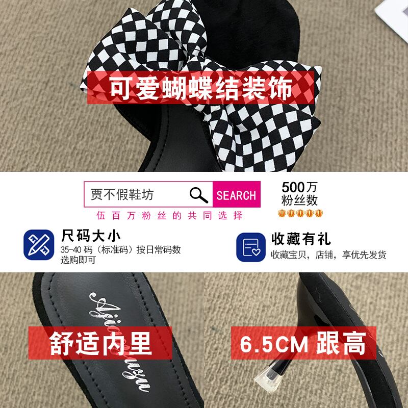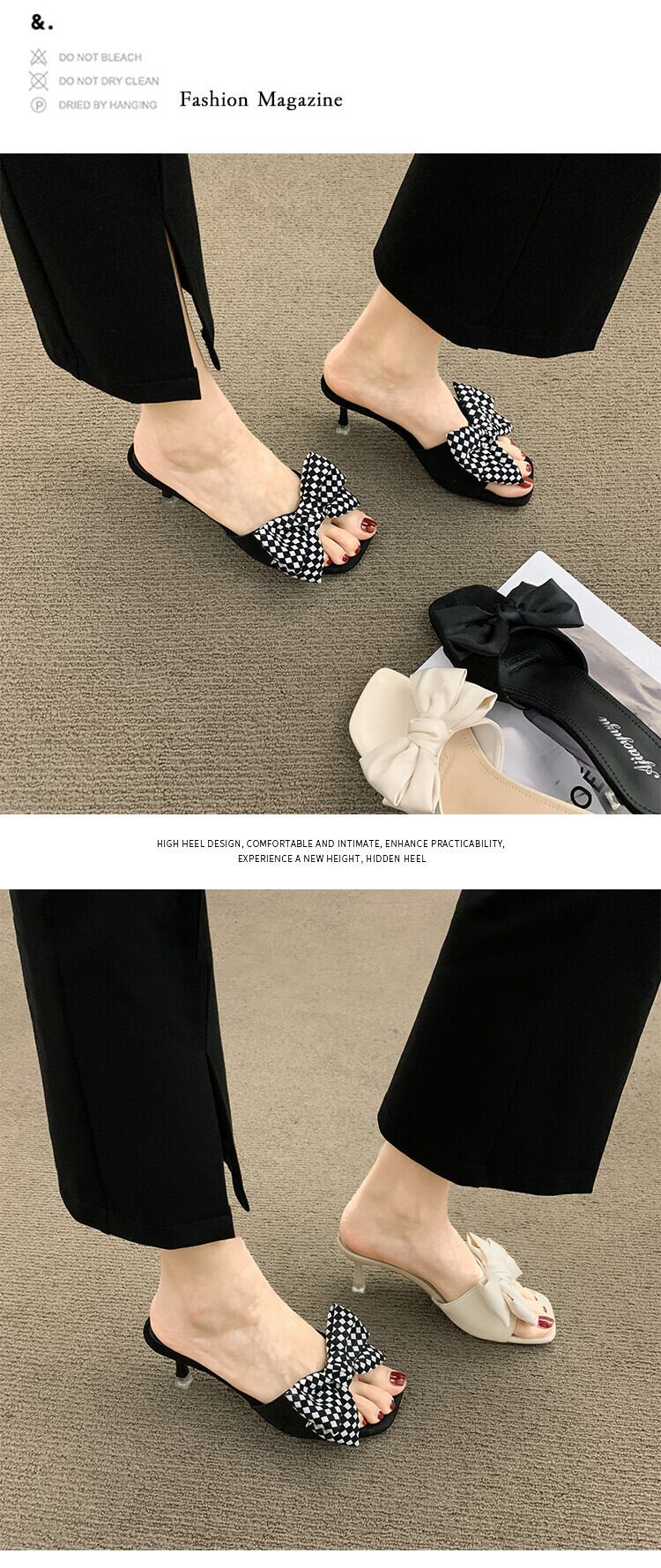 ワンワードビーチサンダル女性の2022年夏の新しいチェッカーボードボウスティレットファッションオールマッチフェアリースタイルスリッパ リボン ミュール 靴 シューズ サマー 夏物 jxjxf31630603841