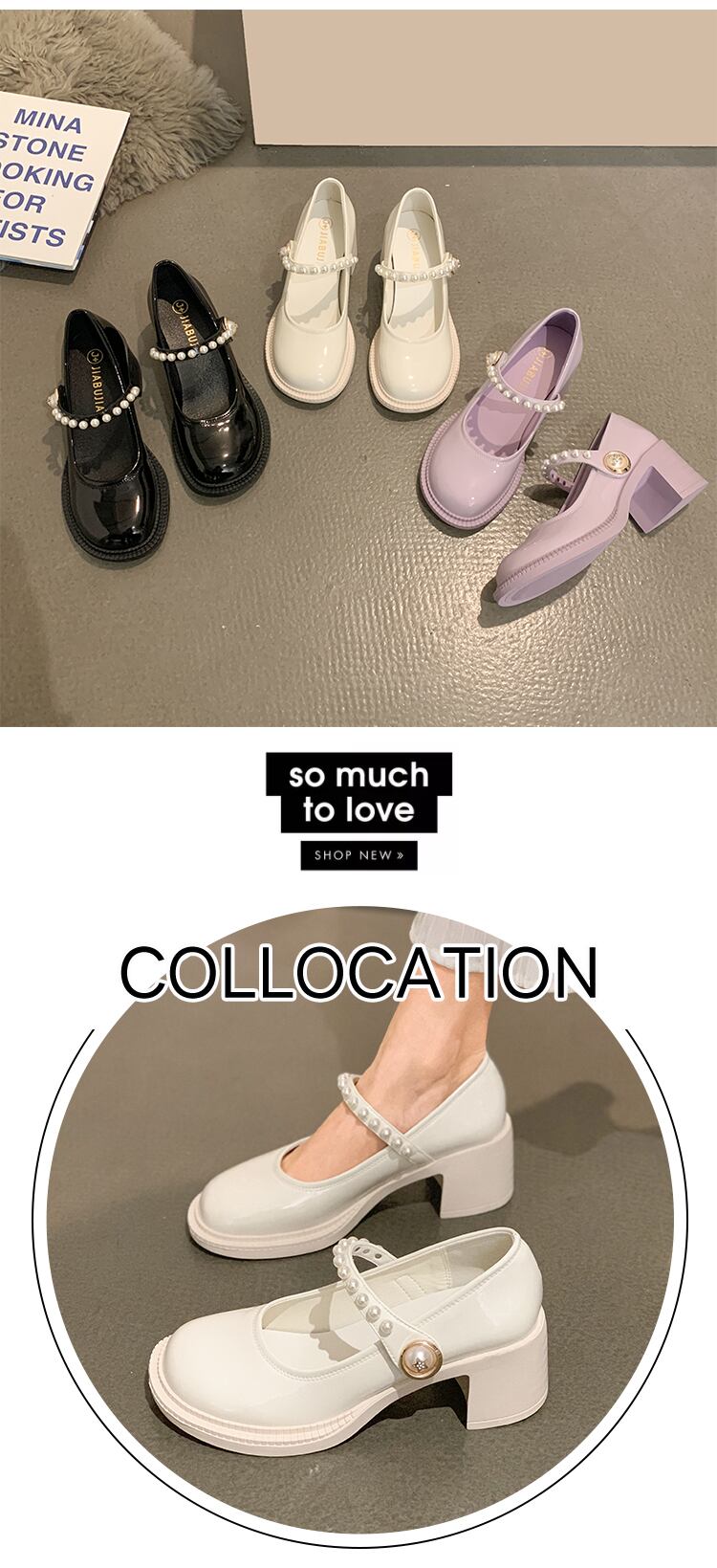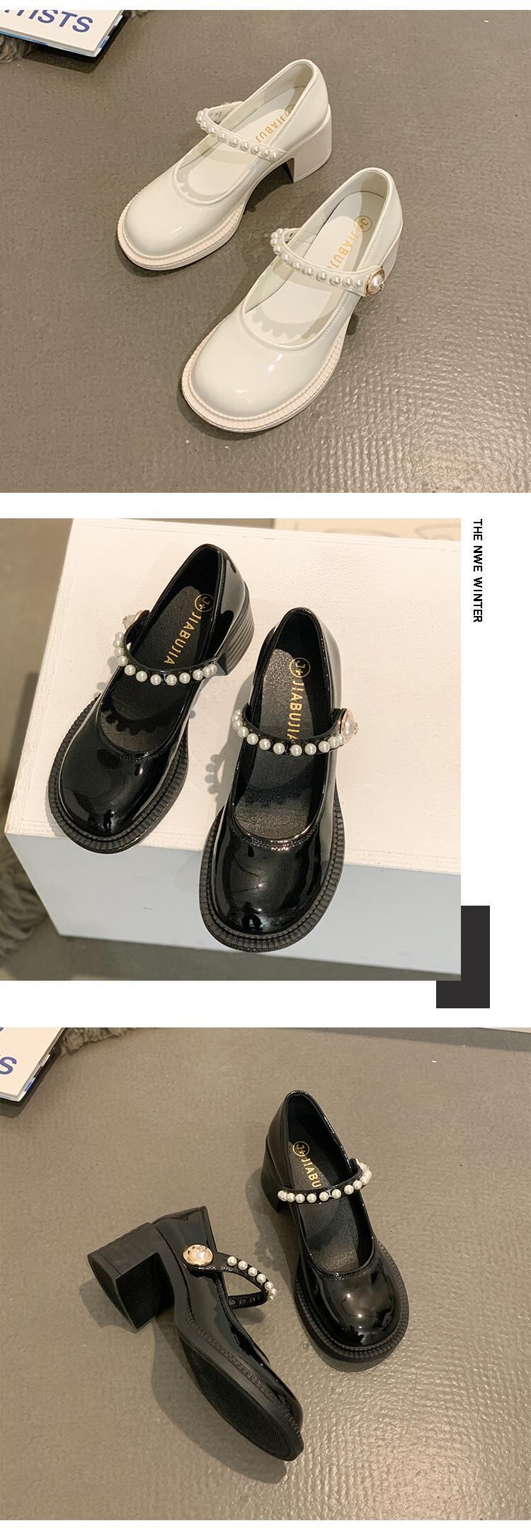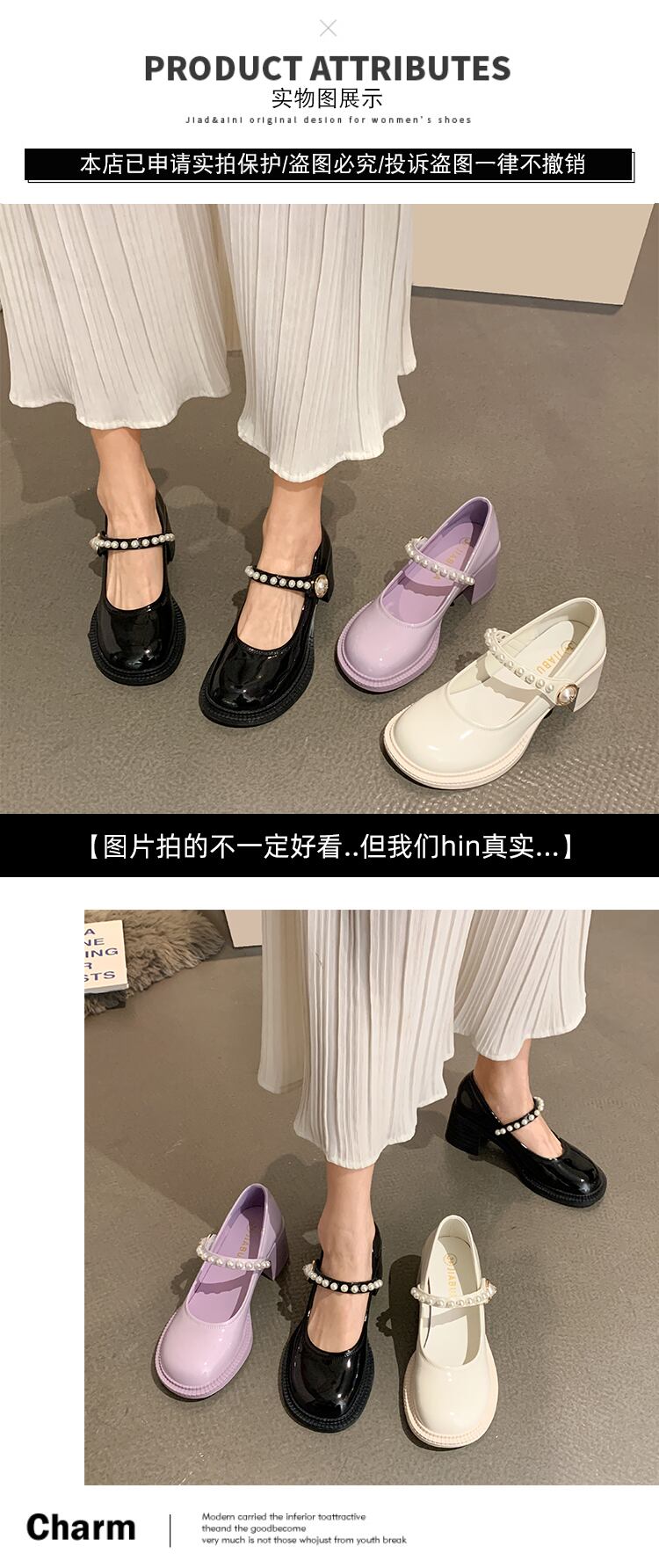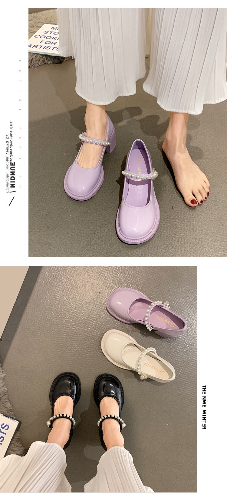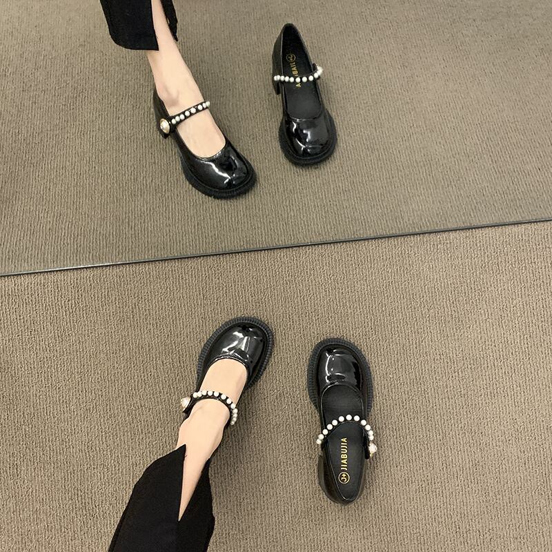 シングルシューズ女性の2022年春の新しいファッションオールマッチパールベルクロラウンドヘッド浅い口厚いヒール滑り止めメアリージェーンシューズ 靴 スプリング 春物 真珠 jxjxf55723290463