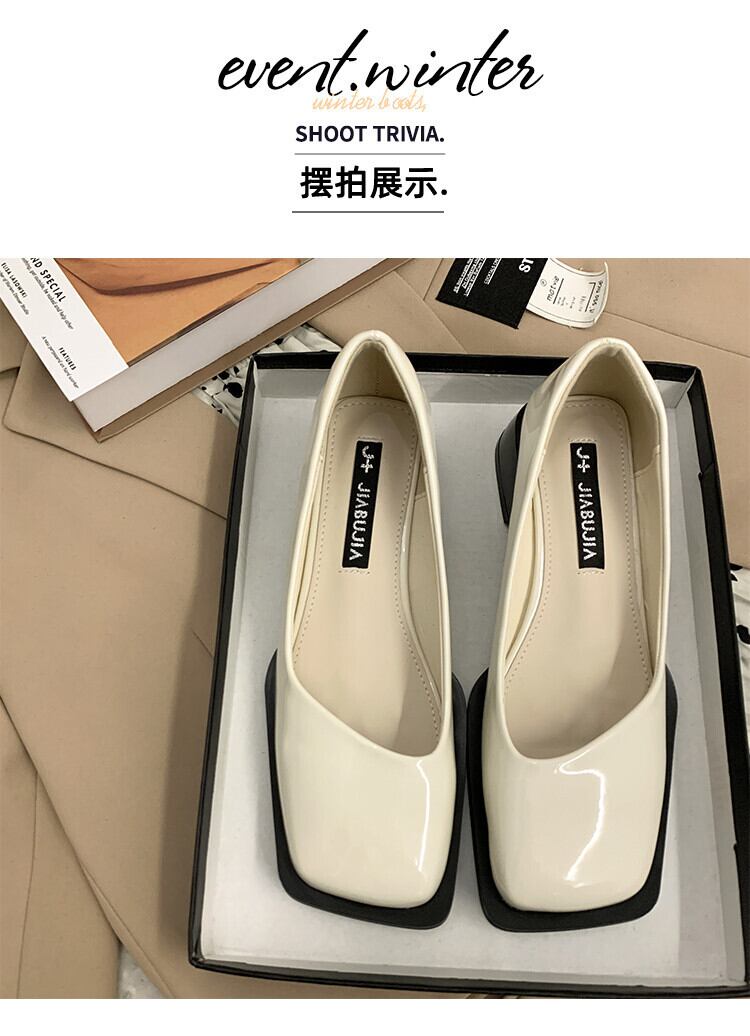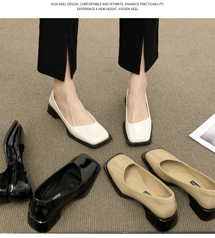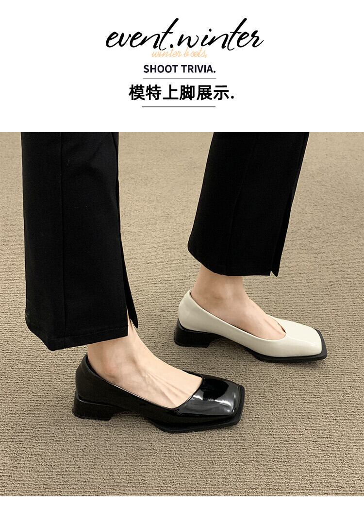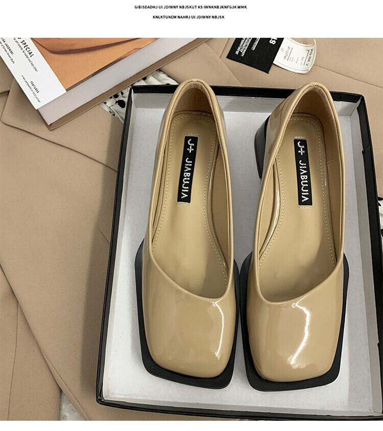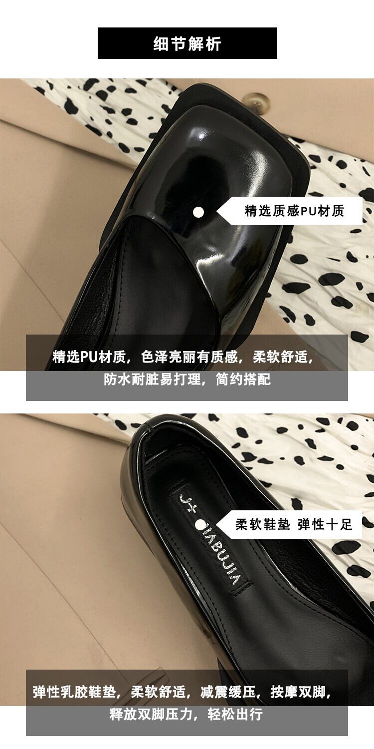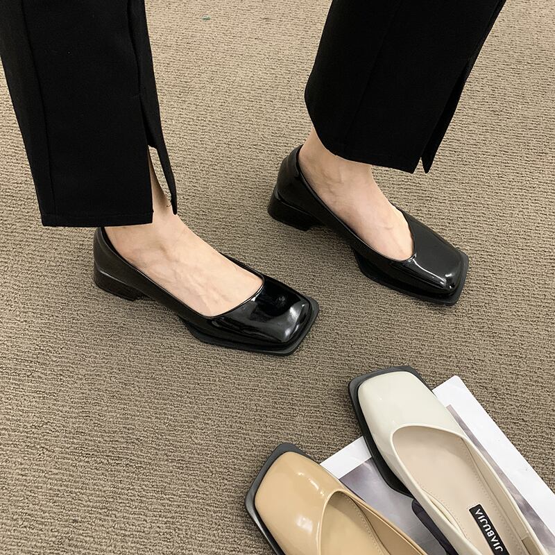 ローヒールシューズレディース2022年夏の新作ファッションオールマッチレトロスクエアヘッド浅い口フラット滑り止めスモールレザーシューズタイド 靴 サマー 夏物 スクウェア jxjxf20456079345