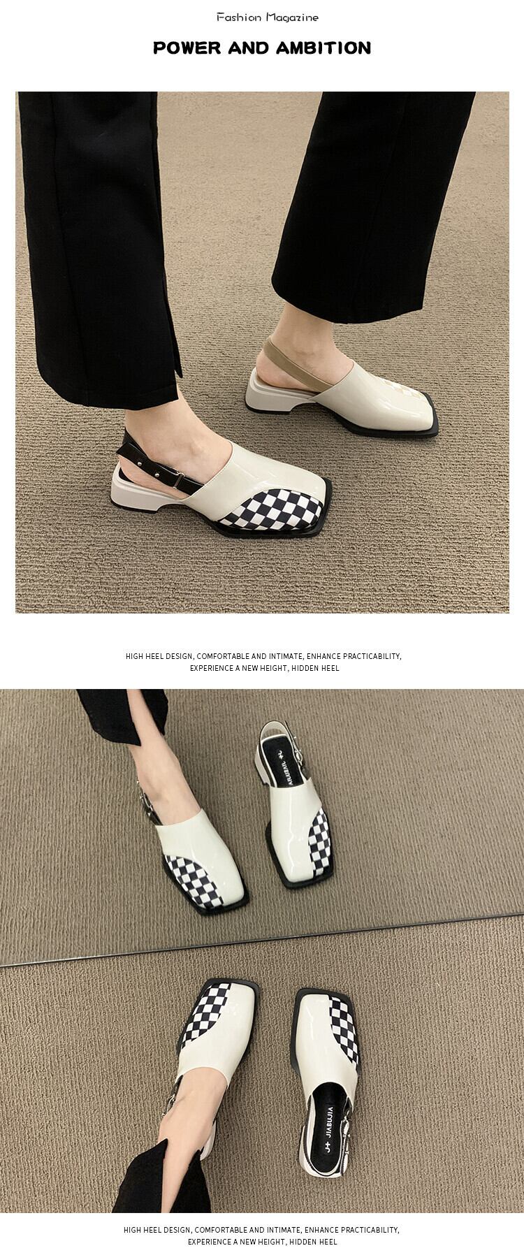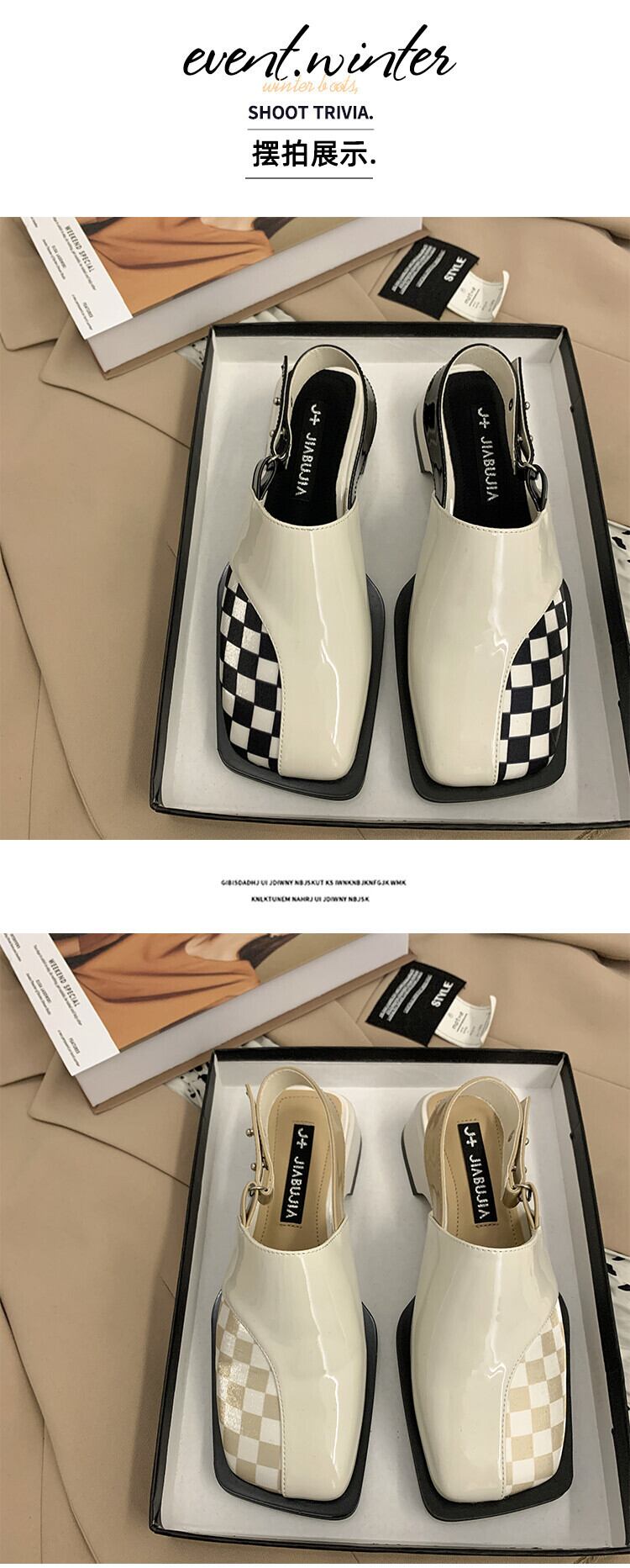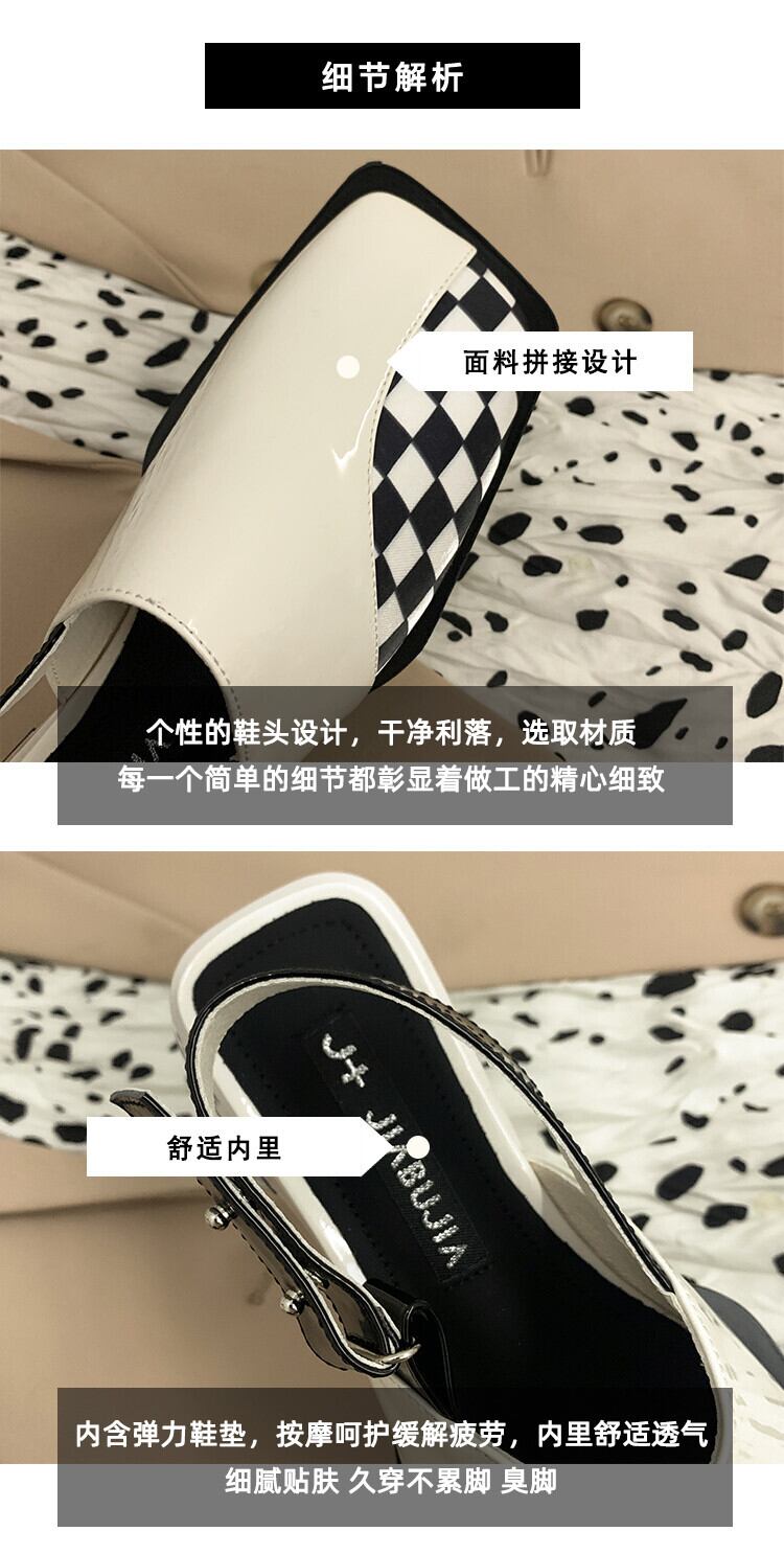 レトロ包頭サンダル女性の2022年夏の新しいチェッカーボードスクエアトゥローヒール滑り止めファッションオールマッチローマの靴 シューズ サマー 夏物 スクウェア jxjxf59065397756