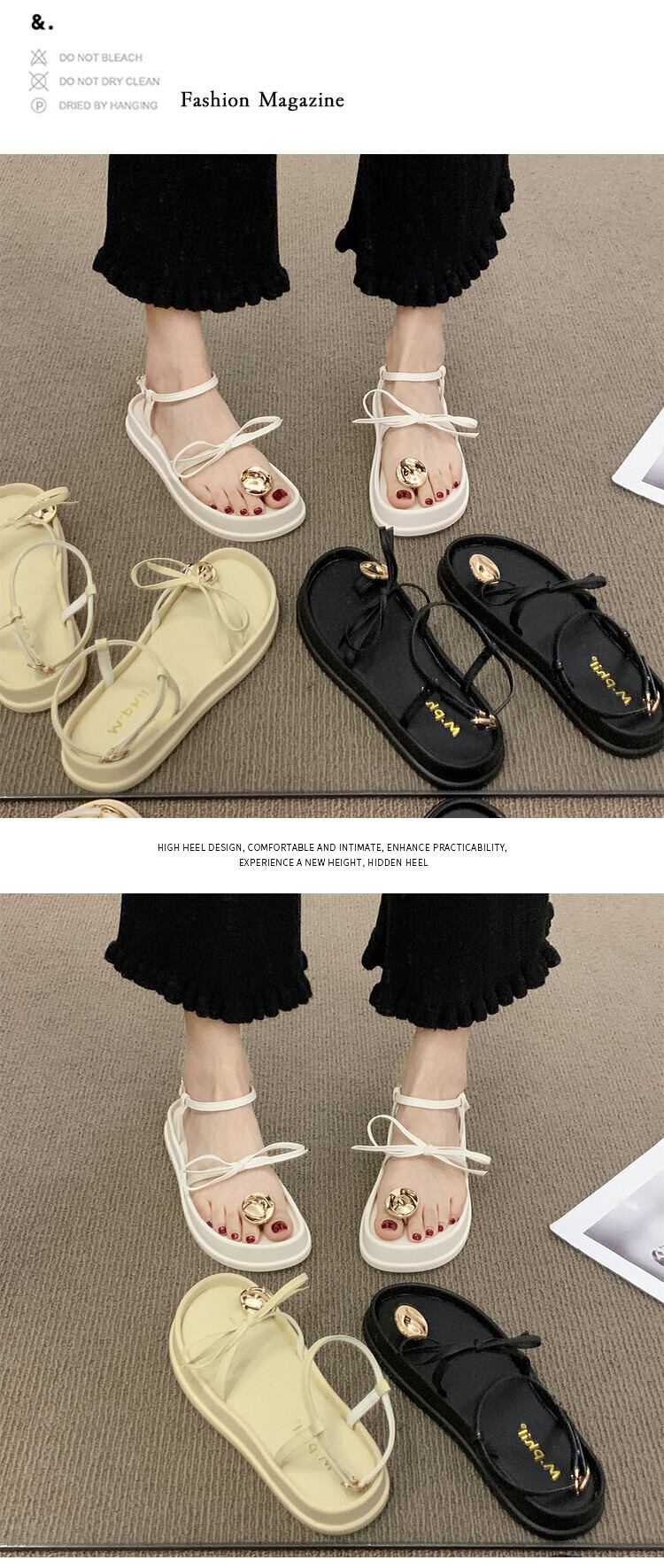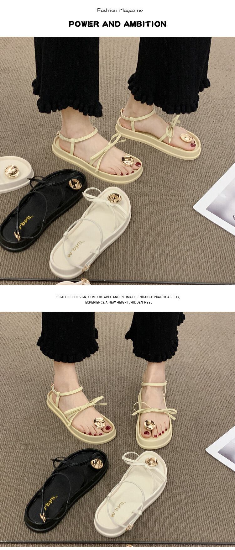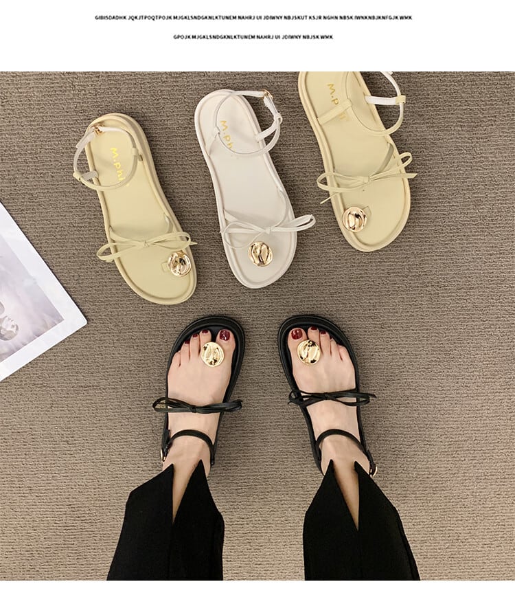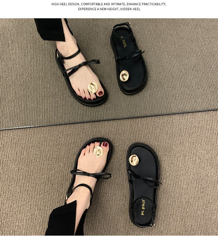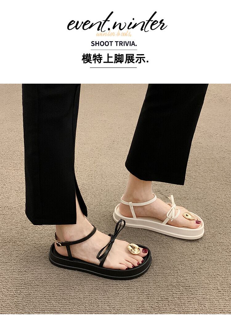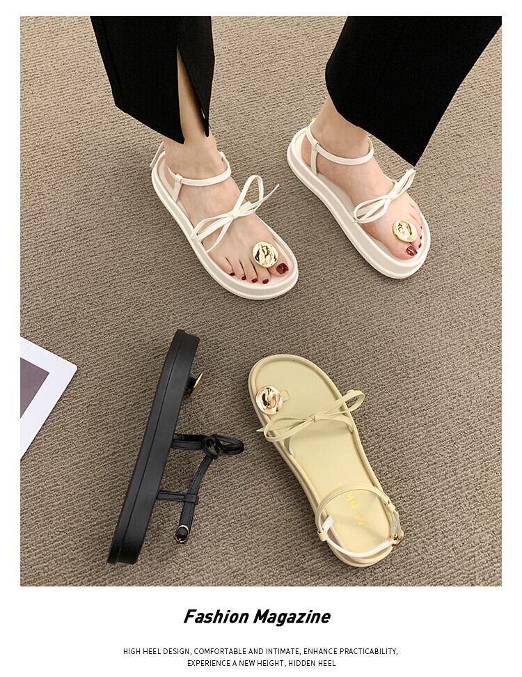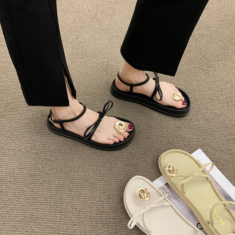 フェアリースタイルのサンダルレディース2022年夏の新しいひも弓平底滑り止めファッションワイルドレトロローマの靴 シューズ リボン サマー 夏物 jxjxf3431805065