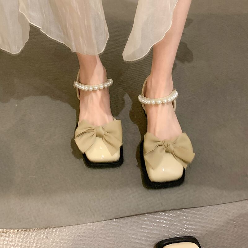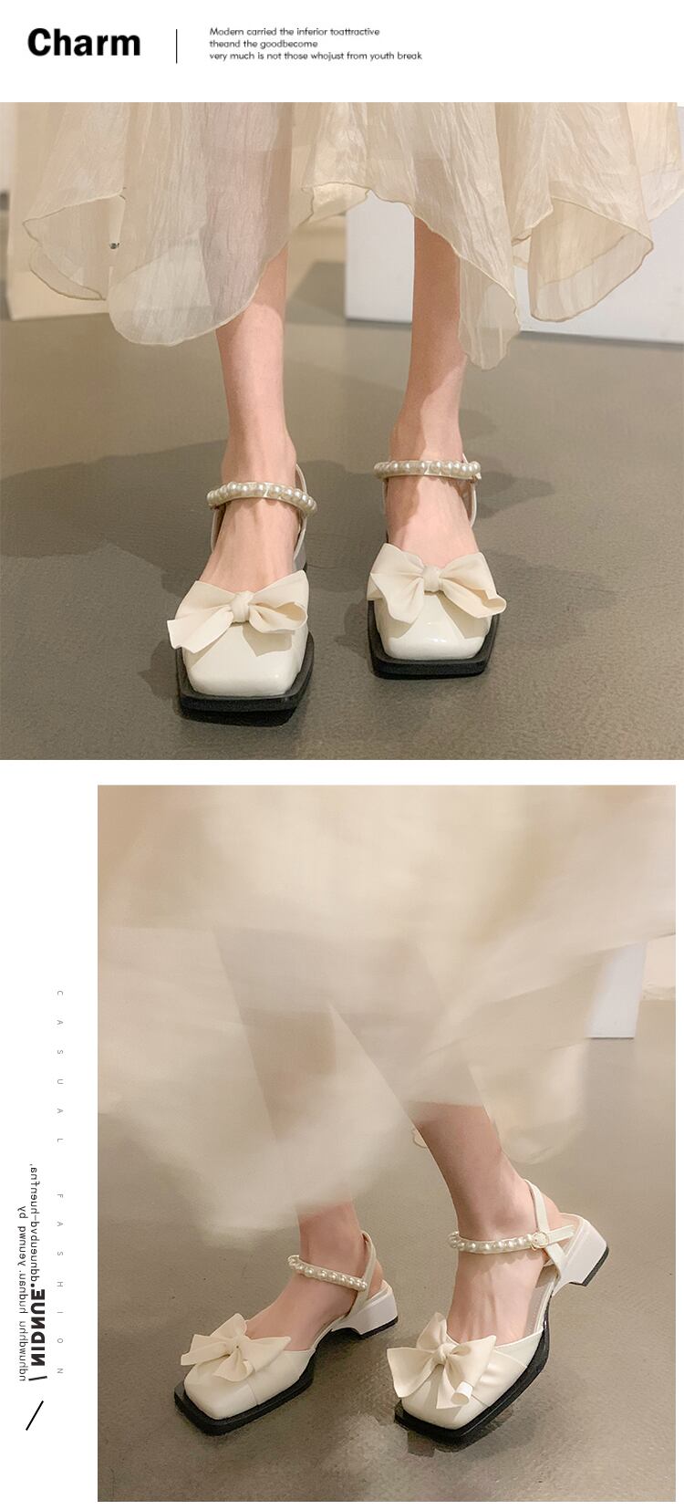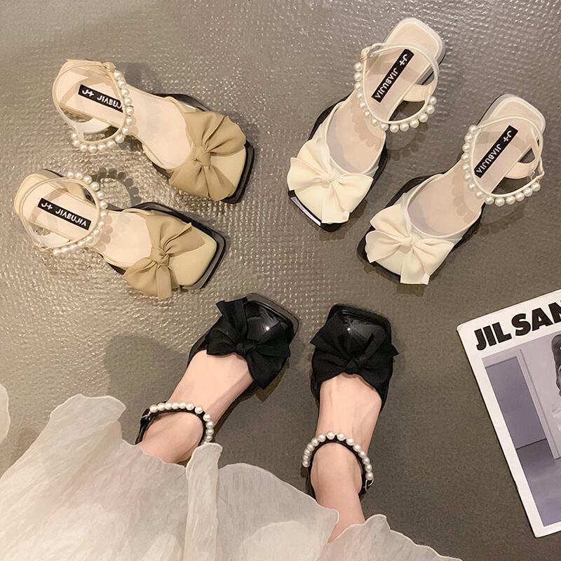 ネットレッドサンダルレディース2022夏新作ファッションオールマッチレトロパールボウローヒール滑り止めスモールレザーシューズ 靴 リボン サマー 夏物 真珠 jxjxf64579072450