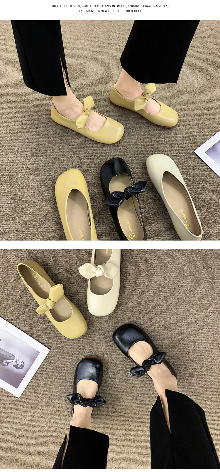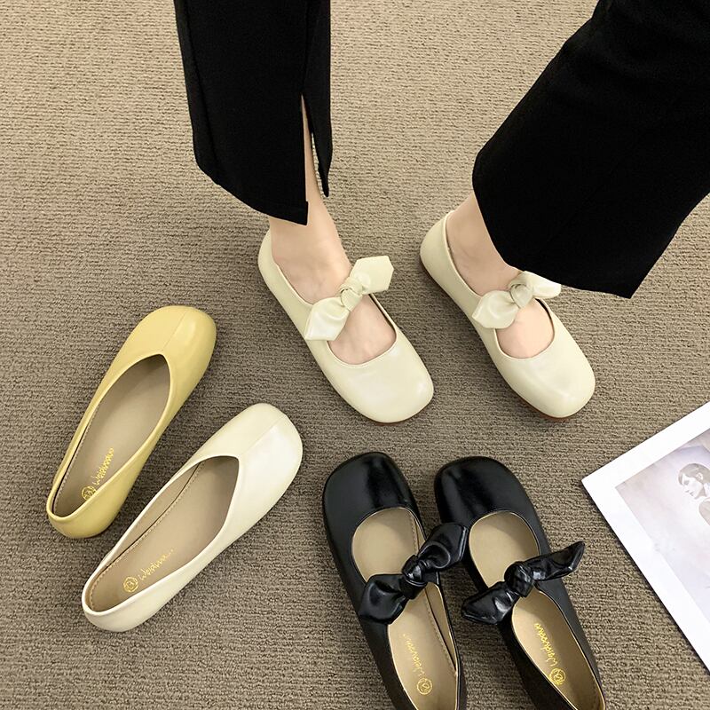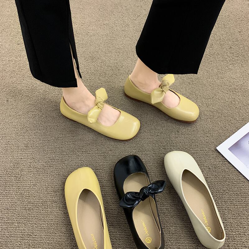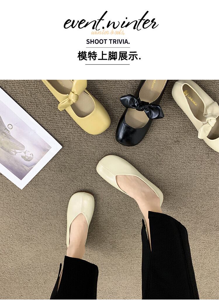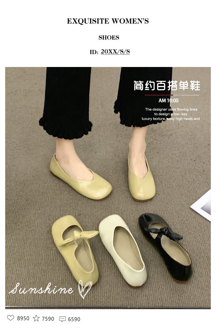eseシングルシューズ女性の2022年春新しいネット赤かわいい弓スクエアヘッド穏やかなフラットボトム滑り止めエンドウ豆の靴 レッド リボン 大人ガーリー スウィート キュート カジュアル スプリング 春物 スクウェア jxjxf89016555555