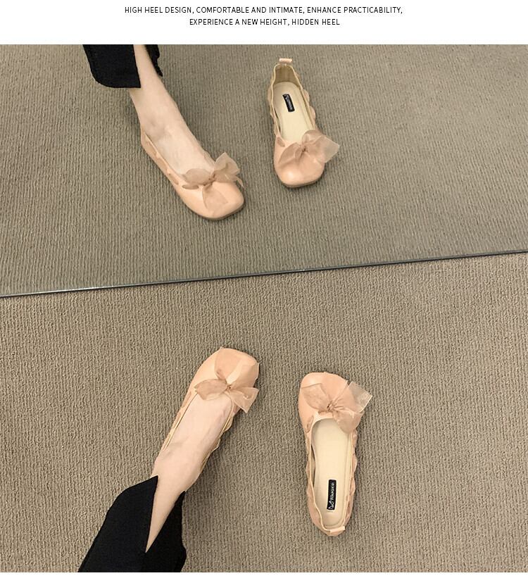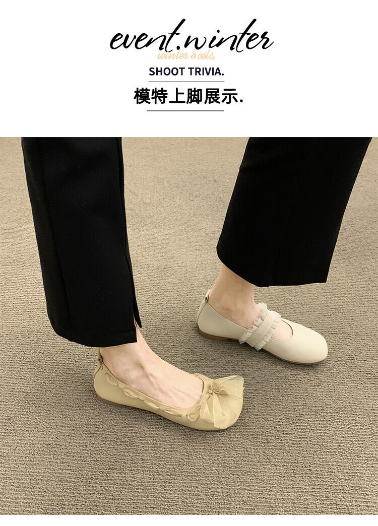 優しいシングルシューズ2022年春の新作ボウフラット滑り止めネットレッドファッションオールマッチソフトボトムビーニーシューズ 靴 リボン スプリング 春物 jxjxf19517008247