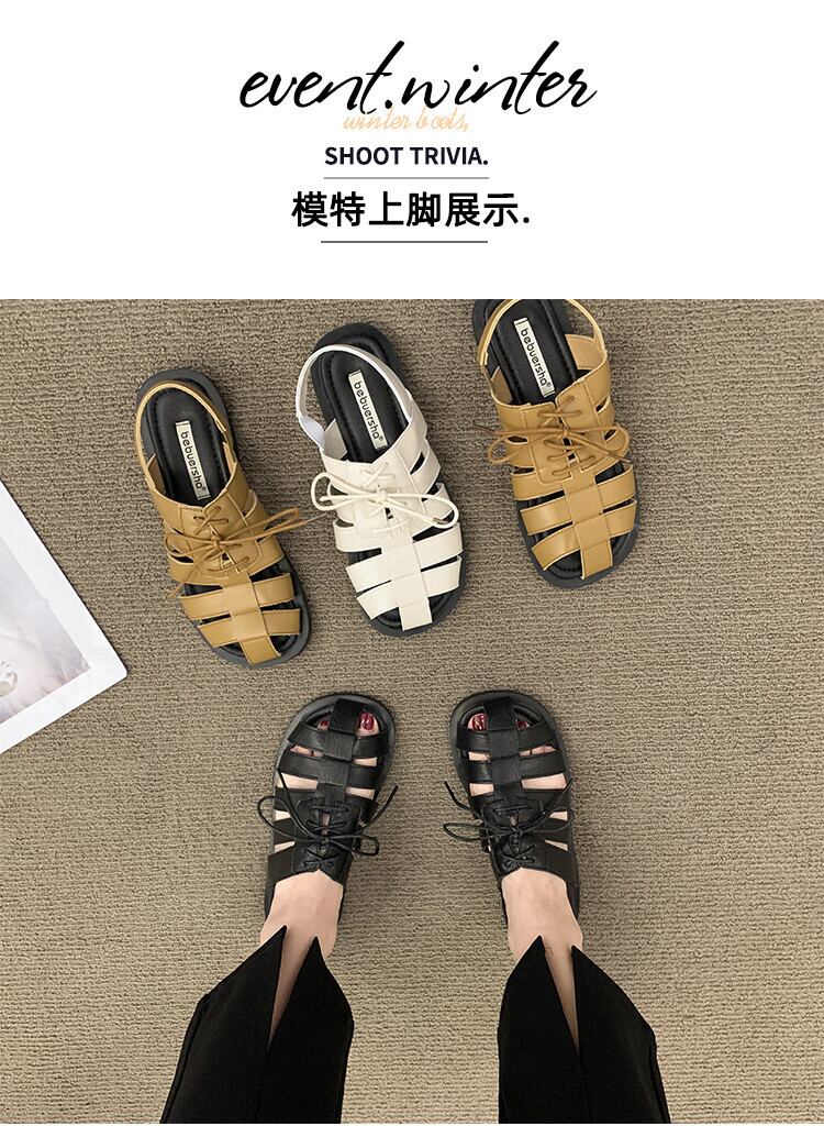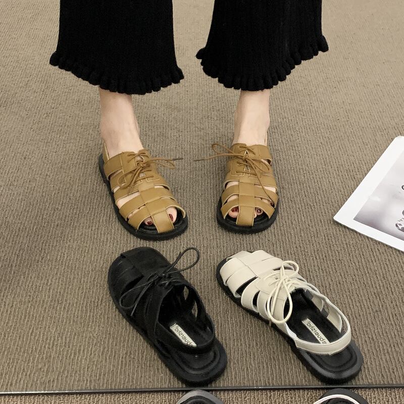 包頭サンダルレディース2022夏新作ファッションオールマッチレトロレースアップフラット滑り止めカジュアルビーチシューズトレンド 靴 サマー 夏物 jxjxf54601298826