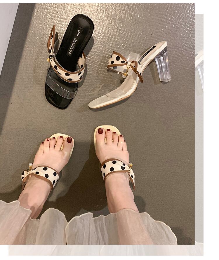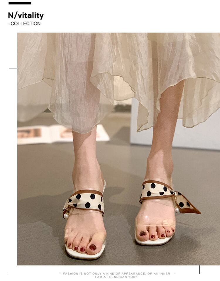 -ヒールスリッパ女性の2022年夏の新しいファッションオールマッチレトロワンワードクリスタル厚手のヒール滑り止めサンダルとスリッパの潮 ミュール 靴 シューズ サマー 夏物 jxjxf352589091