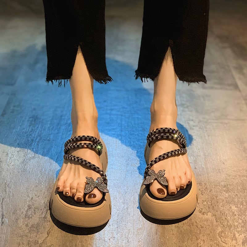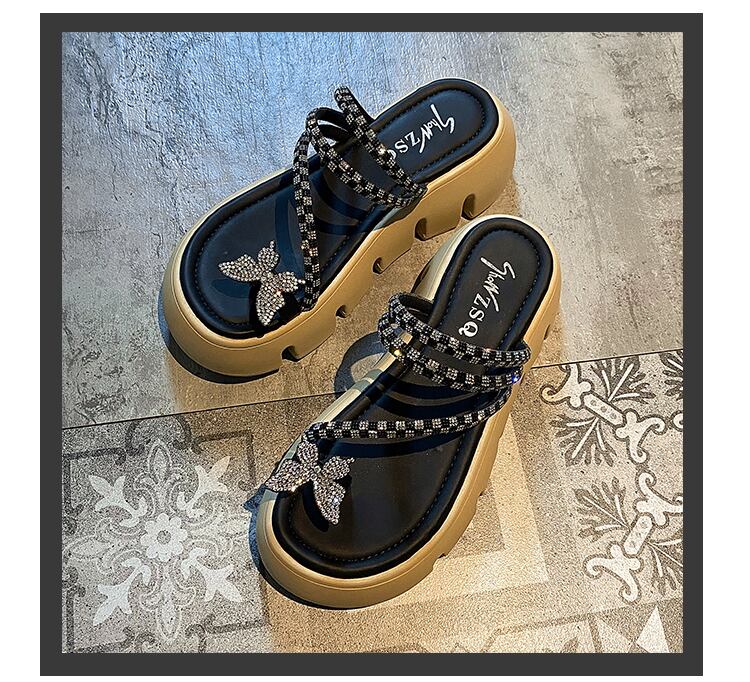 スリッパ女性の潮汐2022年夏の新しいファッションラインストーン小さなマフィン厚い底滑り止めセットトゥサンダルとスリッパ ミュール 靴 シューズ サマー 夏物 jxjxf22020582659