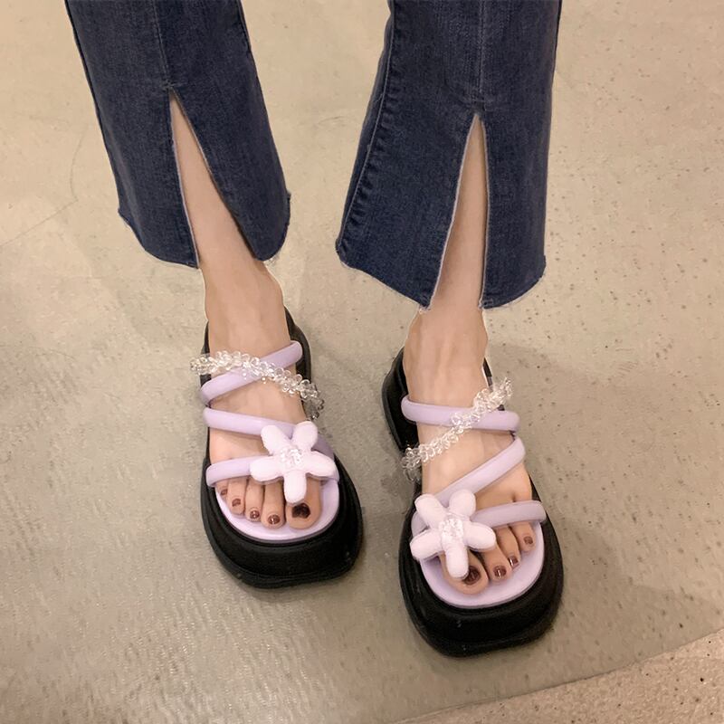 夏のスリッパの女性2022年の新しいファッションオールマッチレトロクリスタルフラワー小さな厚い底滑り止めサンダル ミュール 靴 シューズ サマー 夏物 フラワーデザイン jxjxf93646211977