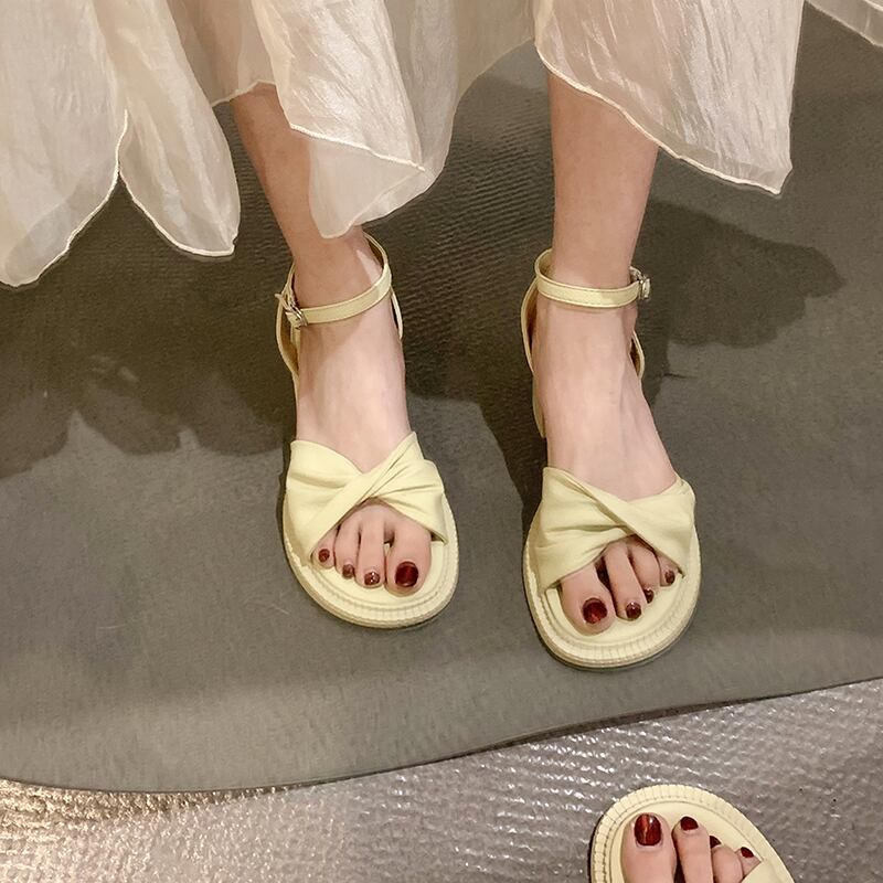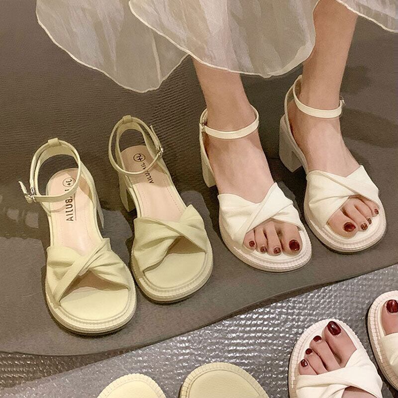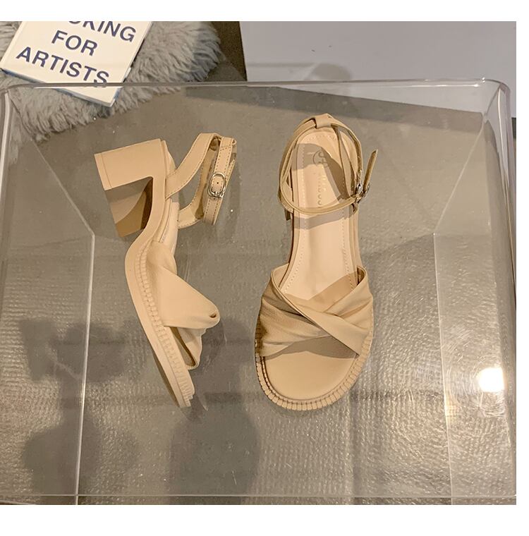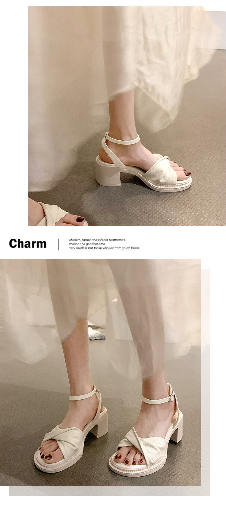 サンダルレディース2022夏新しいスーパーファッション妖精風優しい小さな厚いヒール滑り止め一言ハイヒール 靴 シューズ サマー 夏物 スリッポン jxjxf64504843525