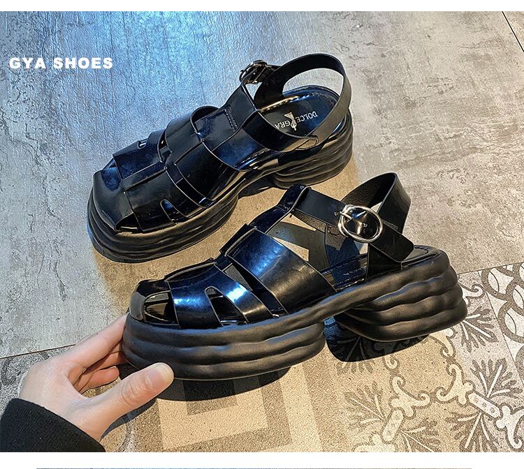 小さなローマの靴の女性の2022年夏の新しい厚いかかと滑り止めネット赤いファッションオールマッチ学生のつま先のサンダル シューズ レッド ヒール サマー 夏物 jxjxf69979042779