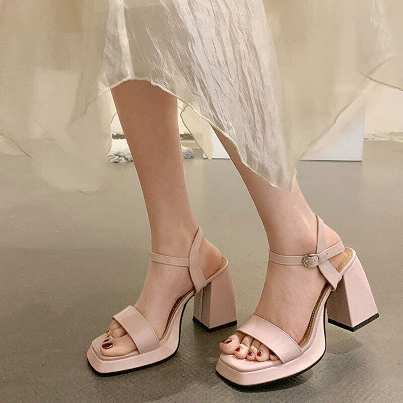 ヒールウィメンズ2022夏ニューバックルシックヒールネットレッドファッションオールマッチフェアリースタイルレトロワンワードサンダル 靴 シューズ サマー 夏物 jxjxf91659100805