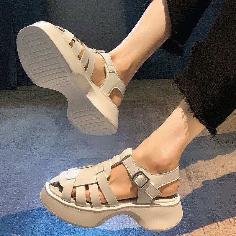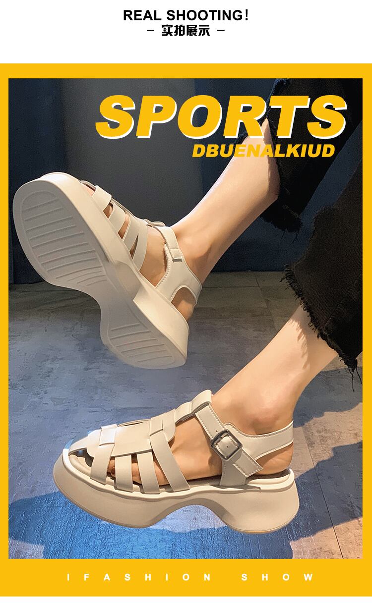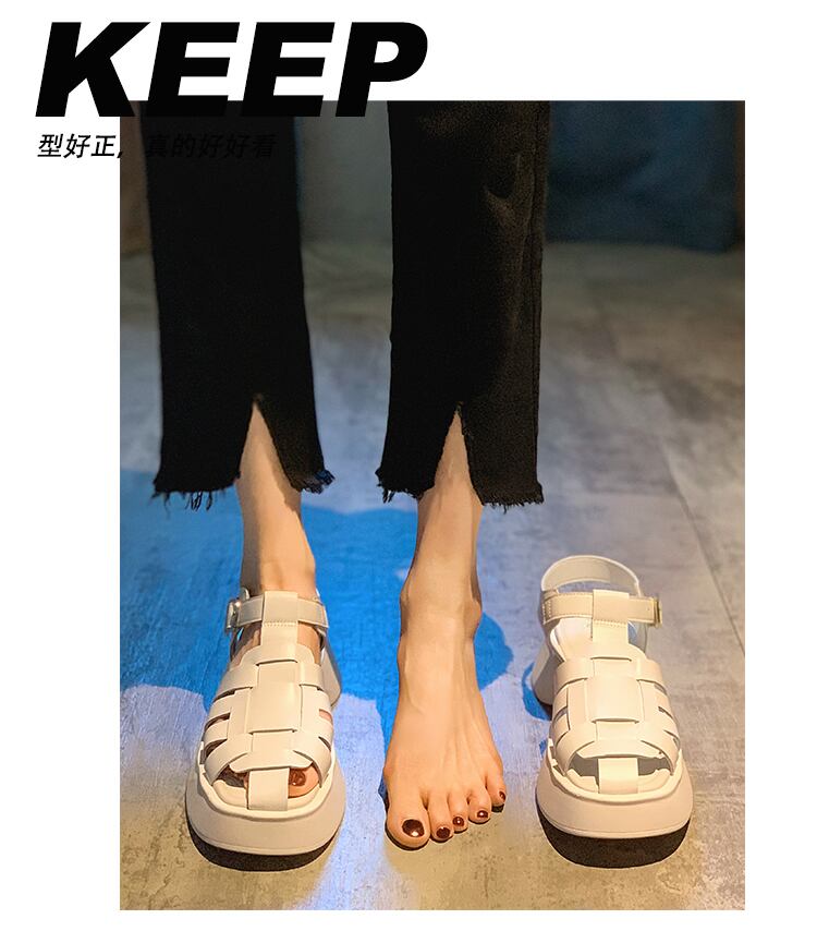 ローマの靴の女性の2022年夏の新しい編みこみの厚いヒール滑り止めスーパーファッションオールマッチスモールトゥサンダル シューズ サマー 夏物 jxjxf25003126030