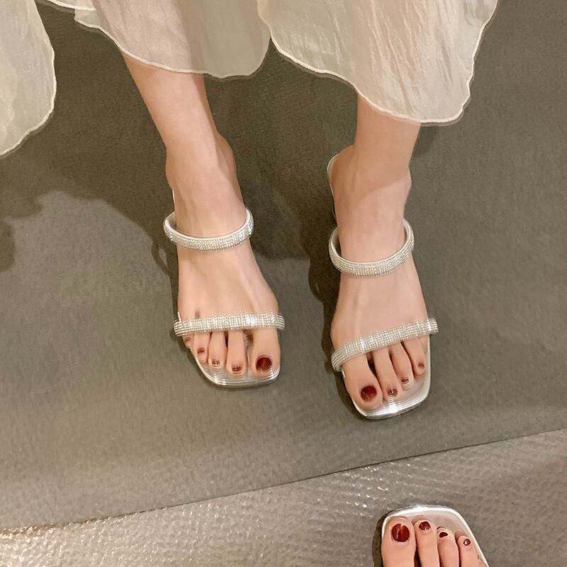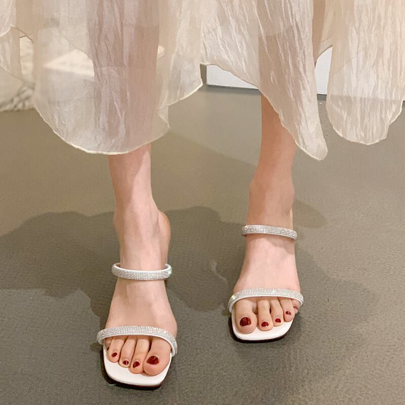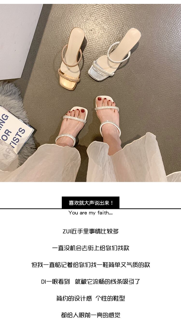 スリッパの女性は2022年夏の新しいファッションオールマッチラインストーンハイヒール滑り止めフェアリースタイルのサンダルを着用します 靴 シューズ ミュール サマー 夏物 jxjxf50546726963