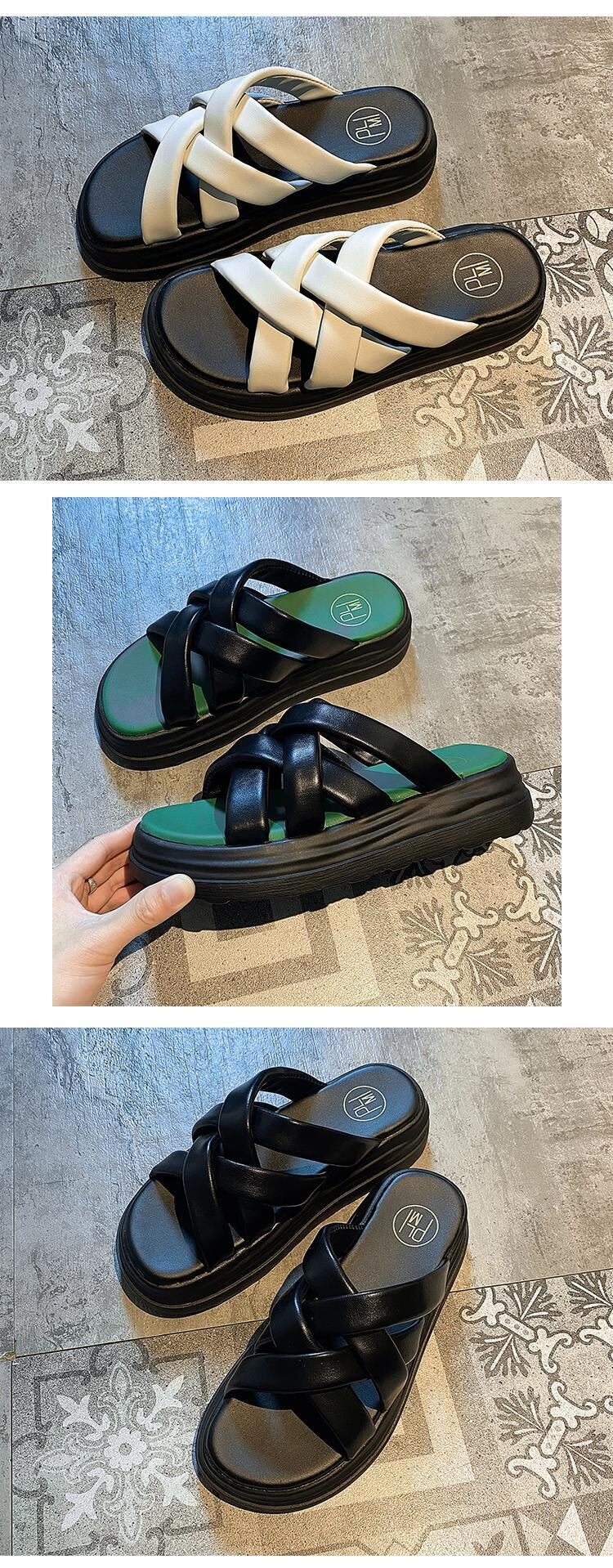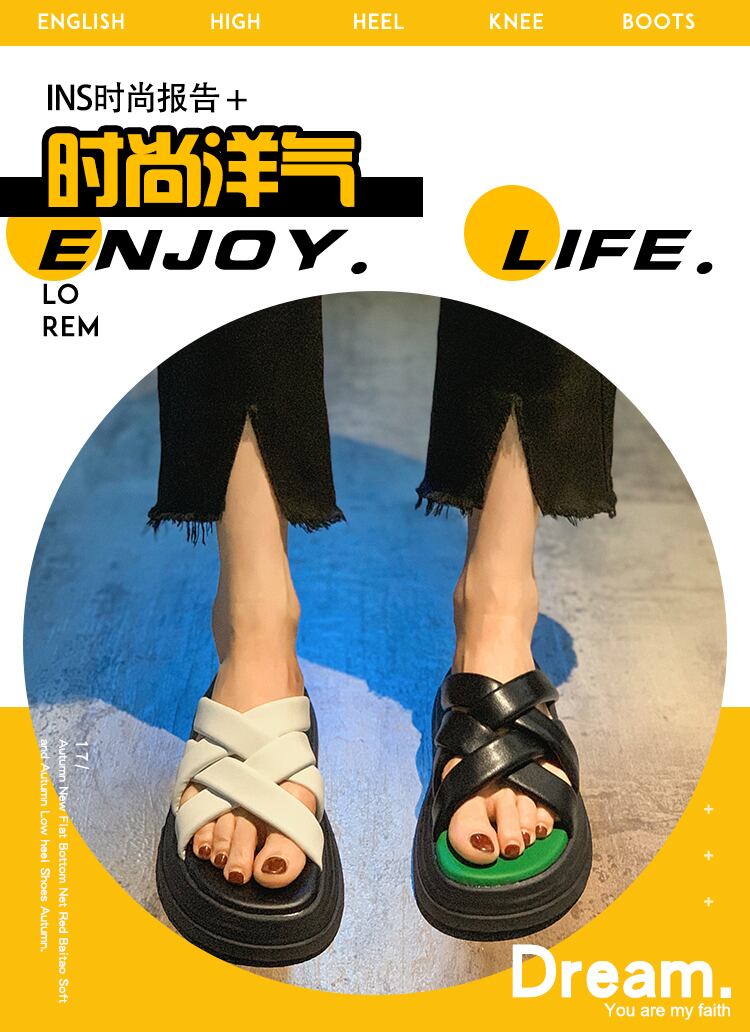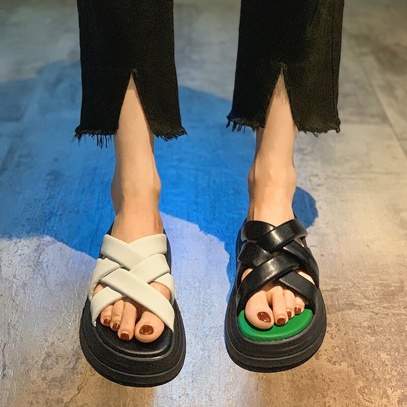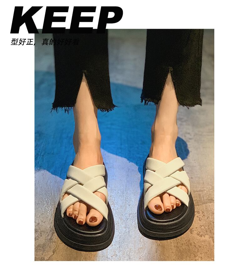 スリッパ女性の2022年夏新しいクロスマフィン滑り止めネットレッドスーパーファッションオールマッチワンワードスリッパ ミュール 靴 シューズ サマー 夏物 jxjxf24926098272