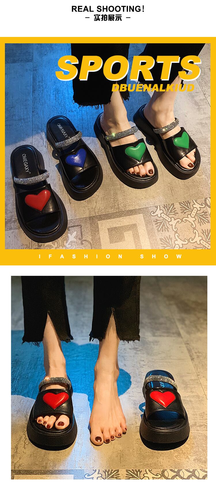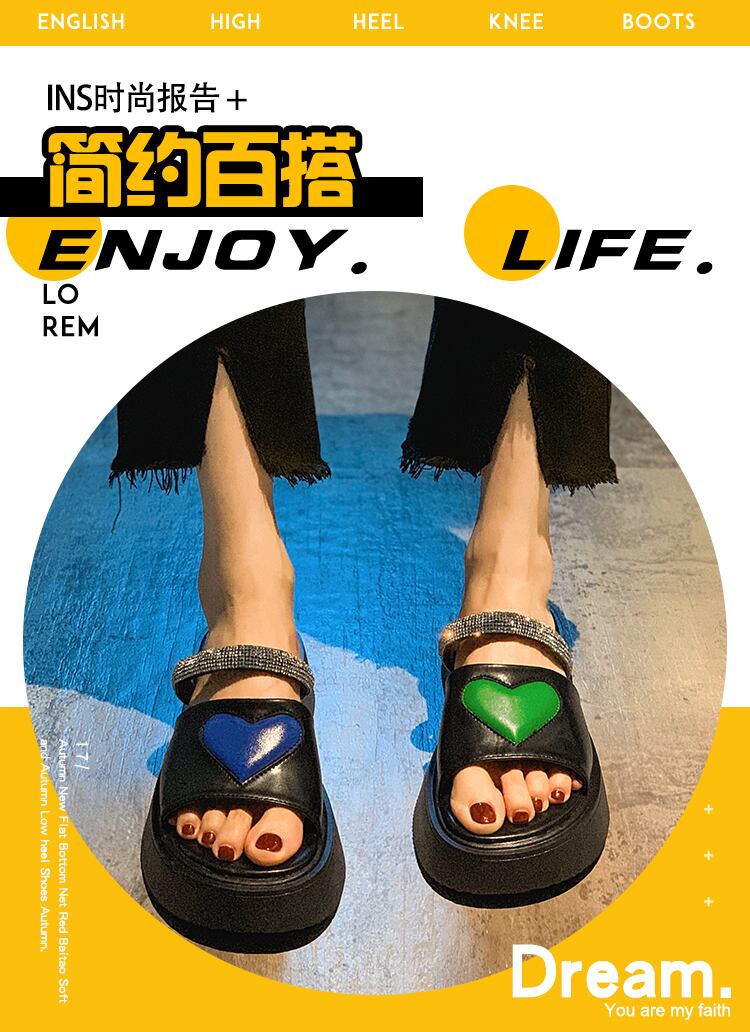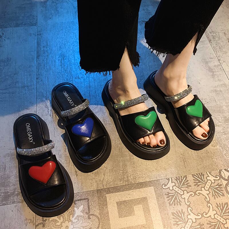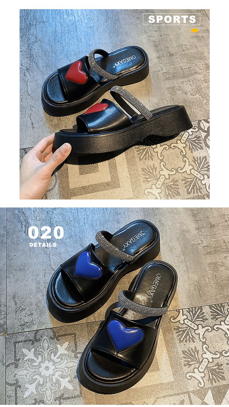 女性の2022年夏の新しい愛のラインストーンの厚い底の滑り止めのファッションオールマッチレトロサンダルとスリッパ ミュール 靴 シューズ サマー 夏物 jxjxf64972742363