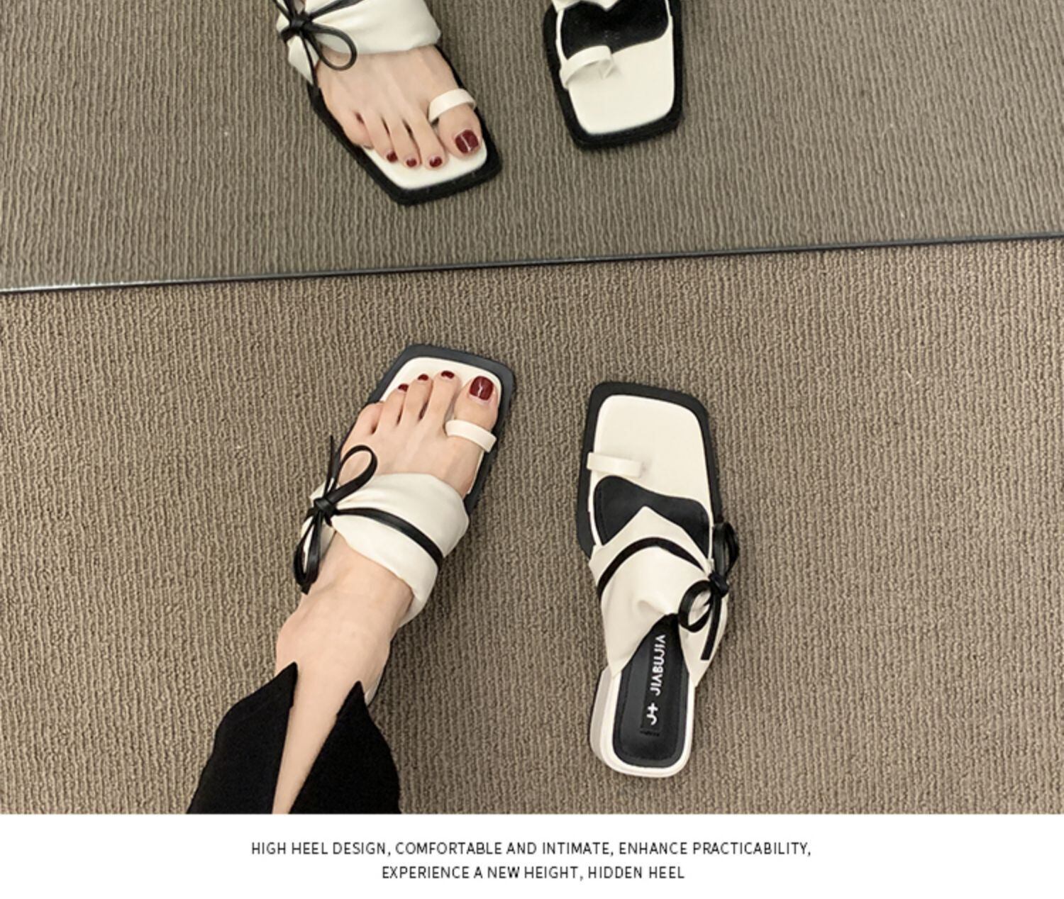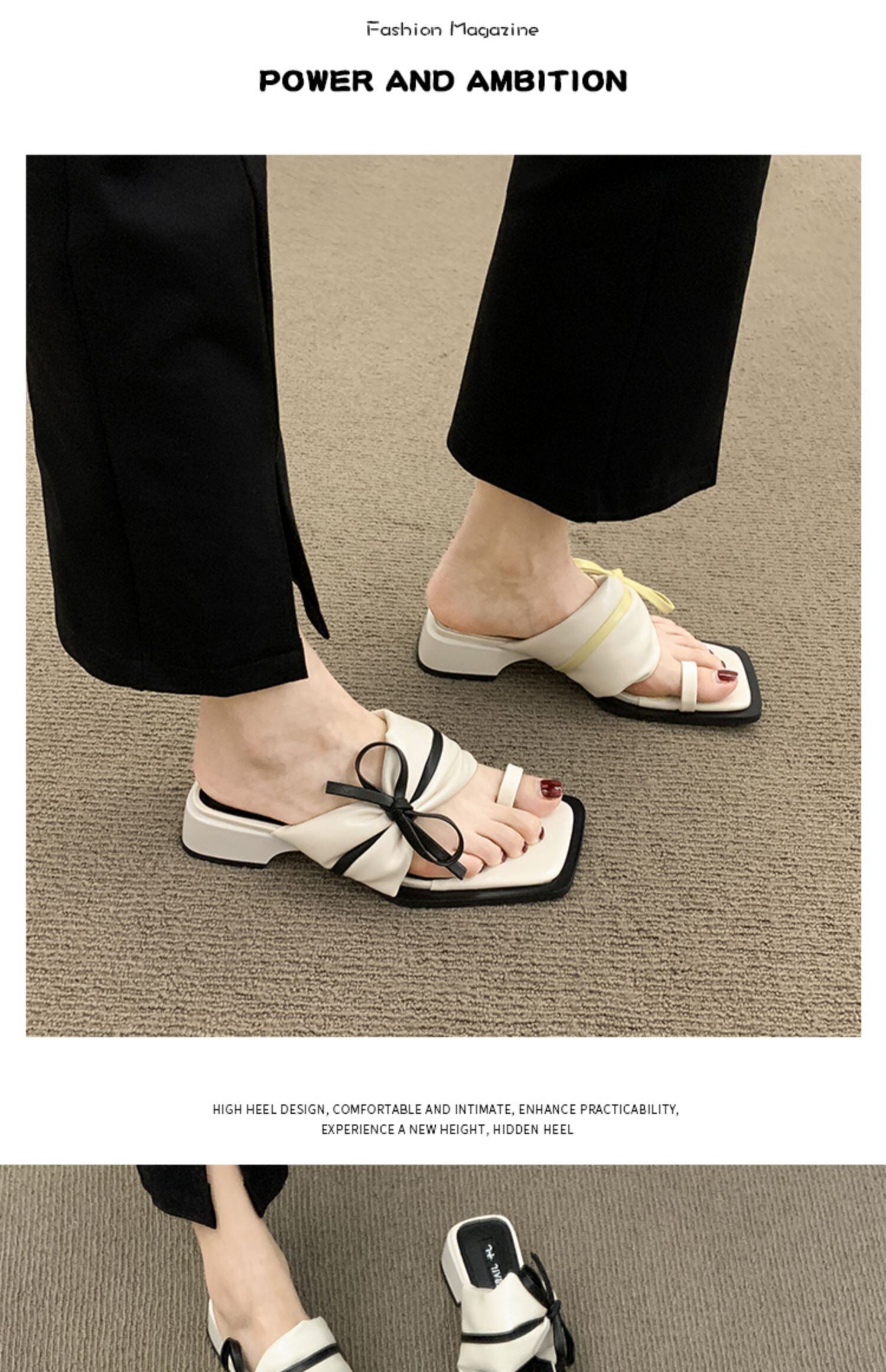 レディーススリッパ2022年夏新作ファッションオールマッチフェアリースタイルボウシックヒールノンスリップセットトゥサンダルとスリッパタイド リボン ミュール 靴 シューズ サマー 夏物 jxjxf46937625156
