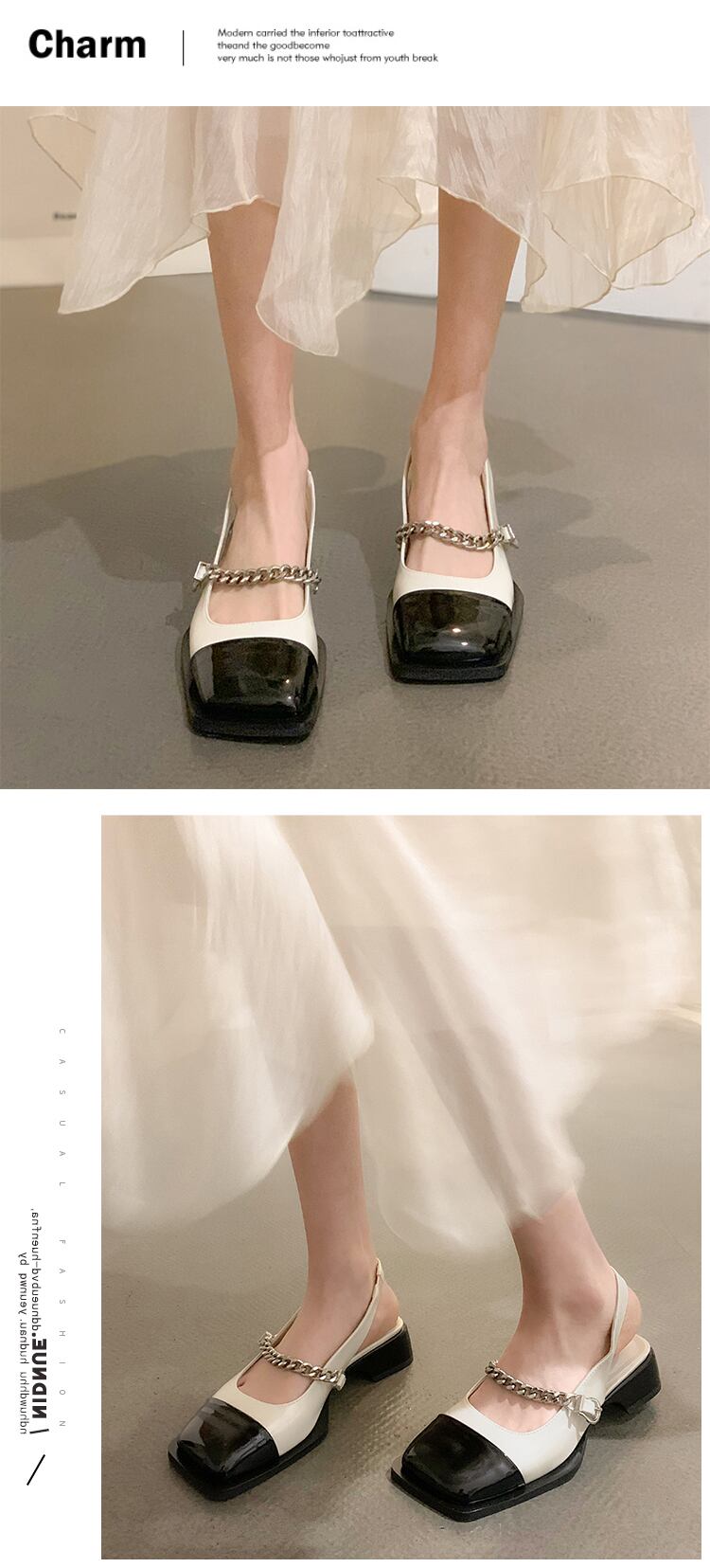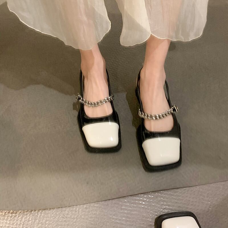 スクエアトゥサンダルレディース2022夏の新しいファッションオールマッチレトロメタルチェーンローヒール滑り止めスモールレザーシューズタイド 靴 サマー 夏物 スクウェア jxjxf1275712055