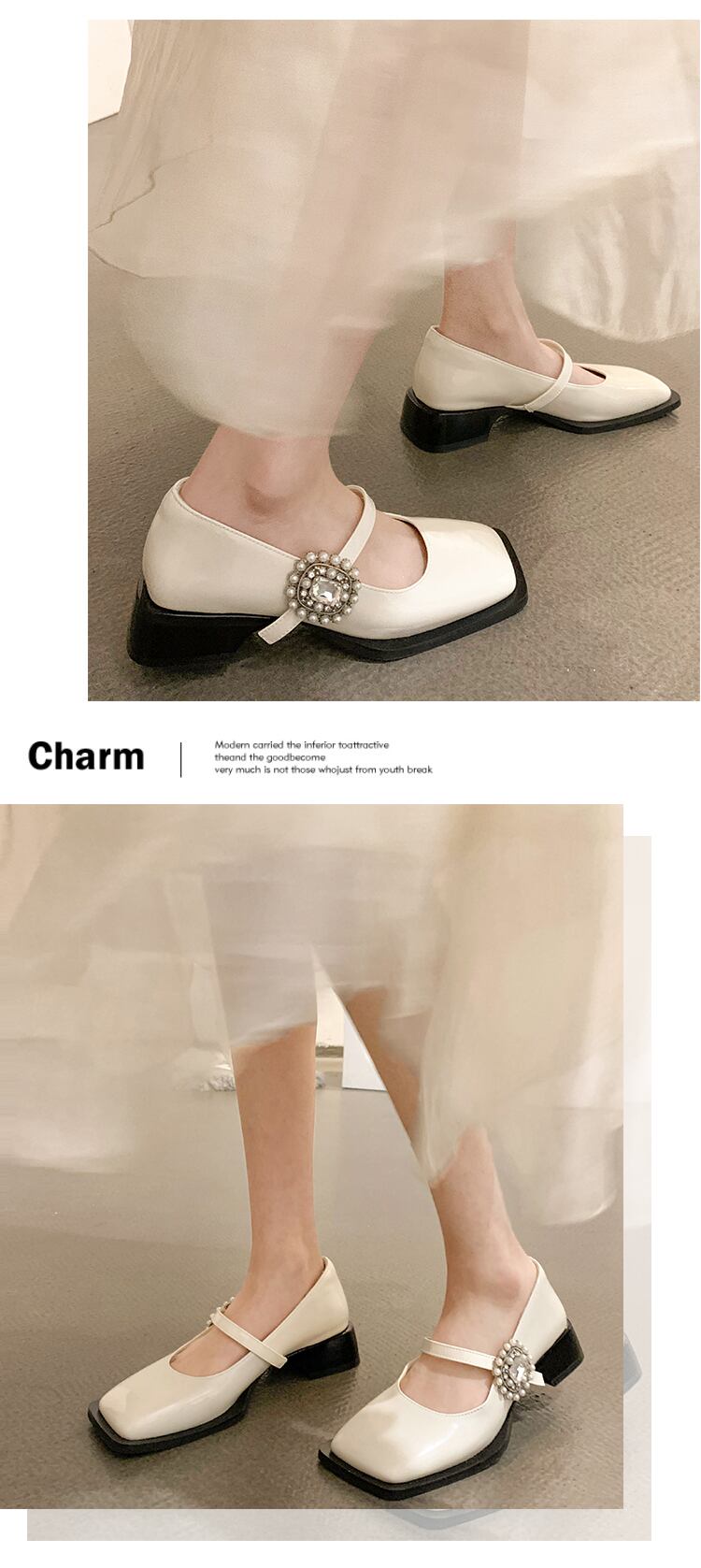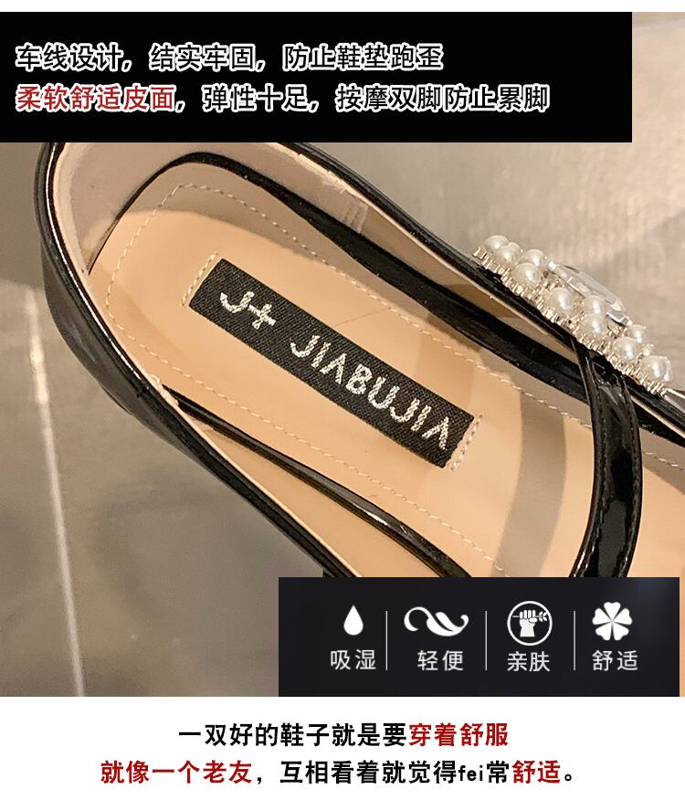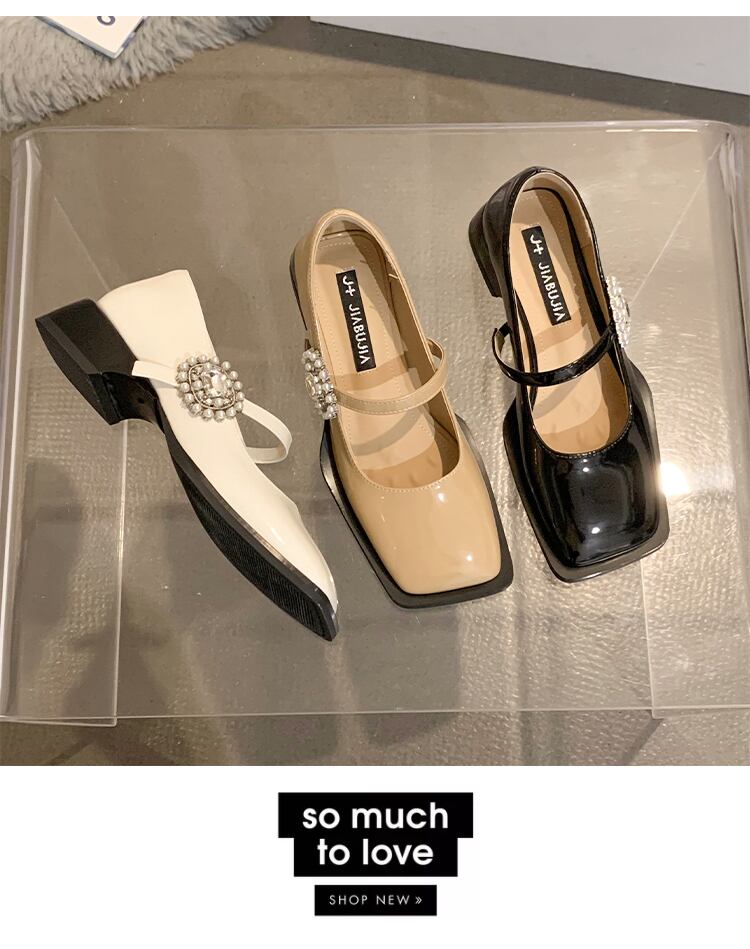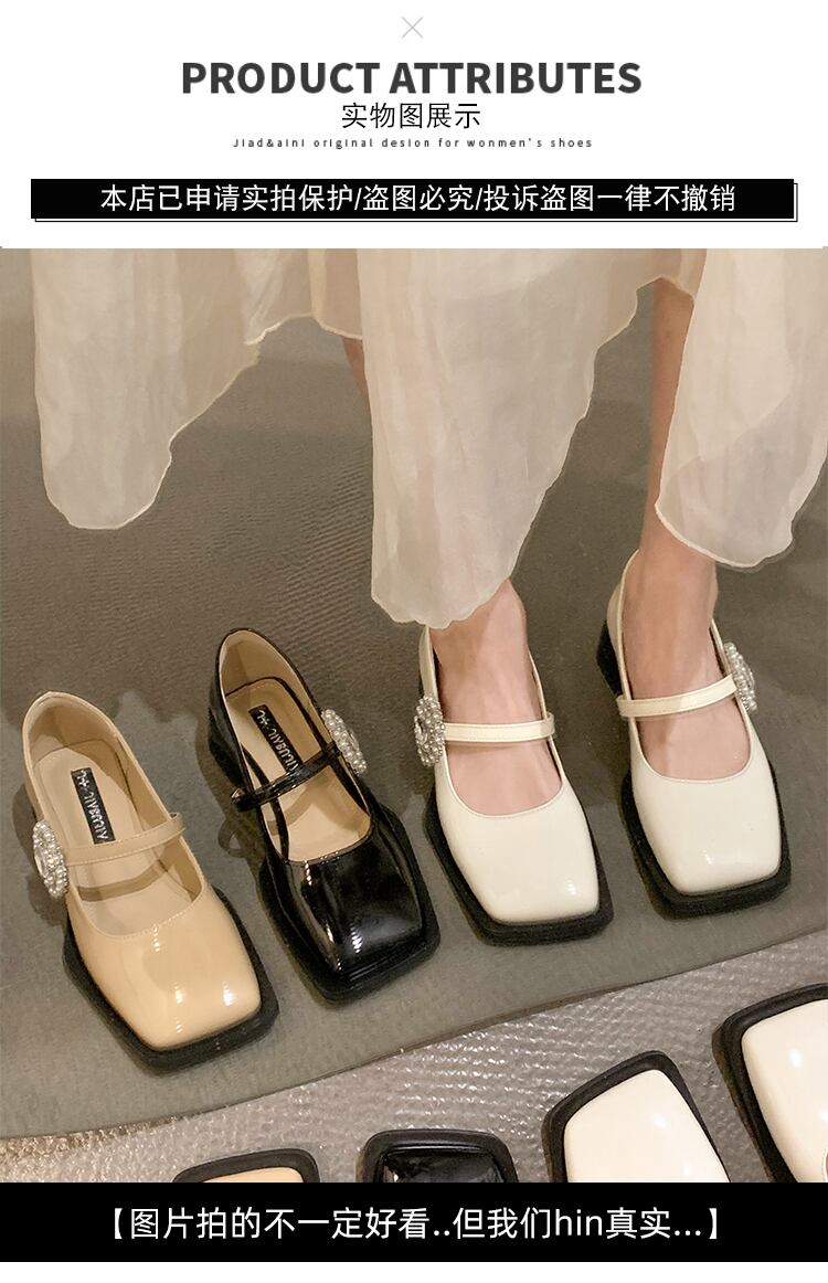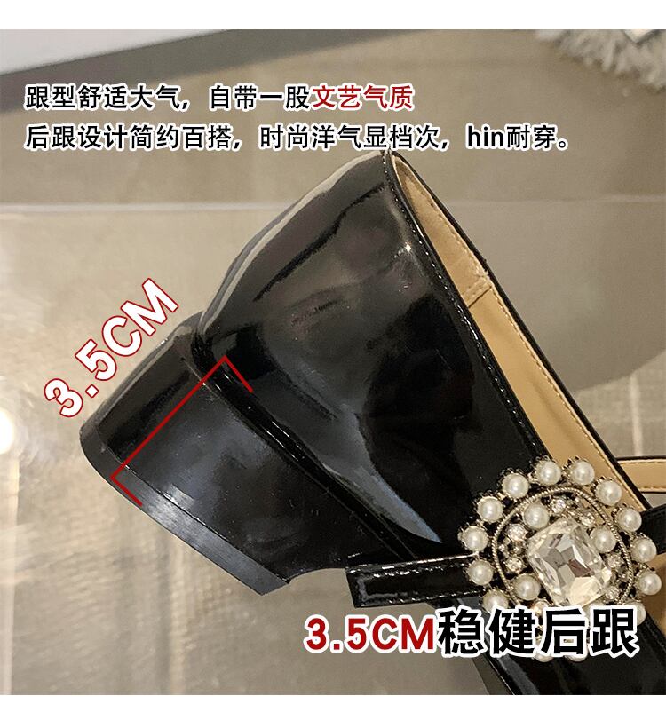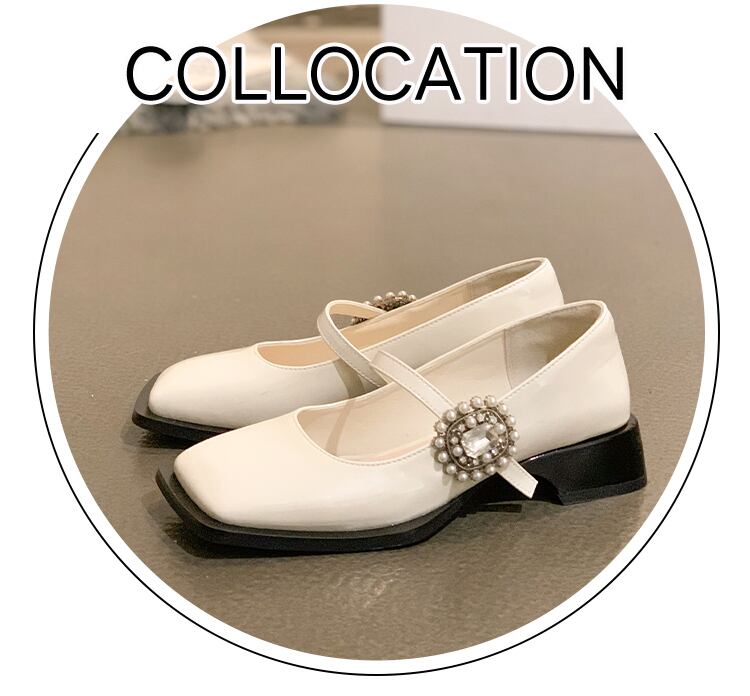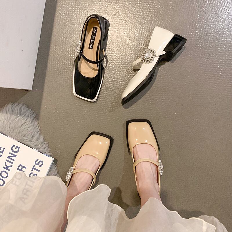 スクエアトゥシューズ女性の2022年春の新しいファッションオールマッチレトロパールラインストーンミッドヒール滑り止めメアリージェーンシューズ 靴 スプリング 春物 真珠 スクウェア jxjxf63185434095