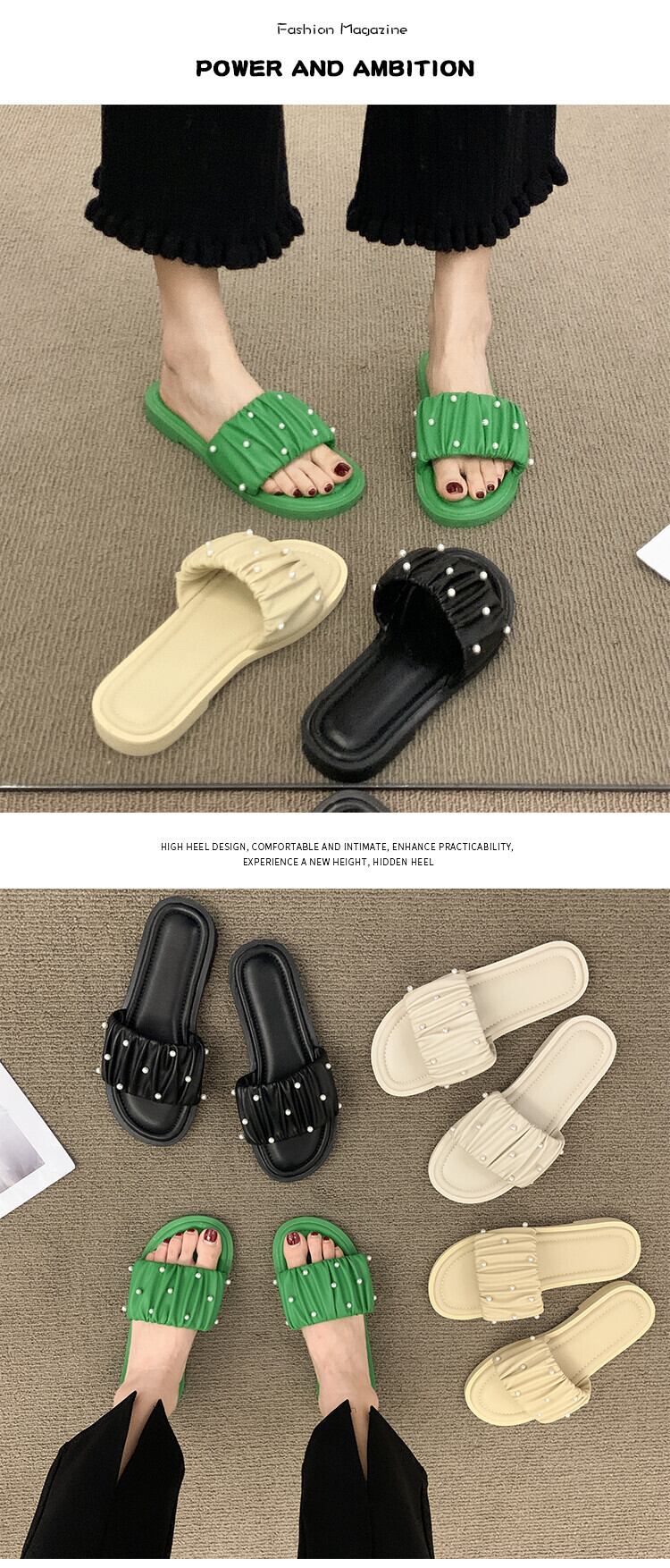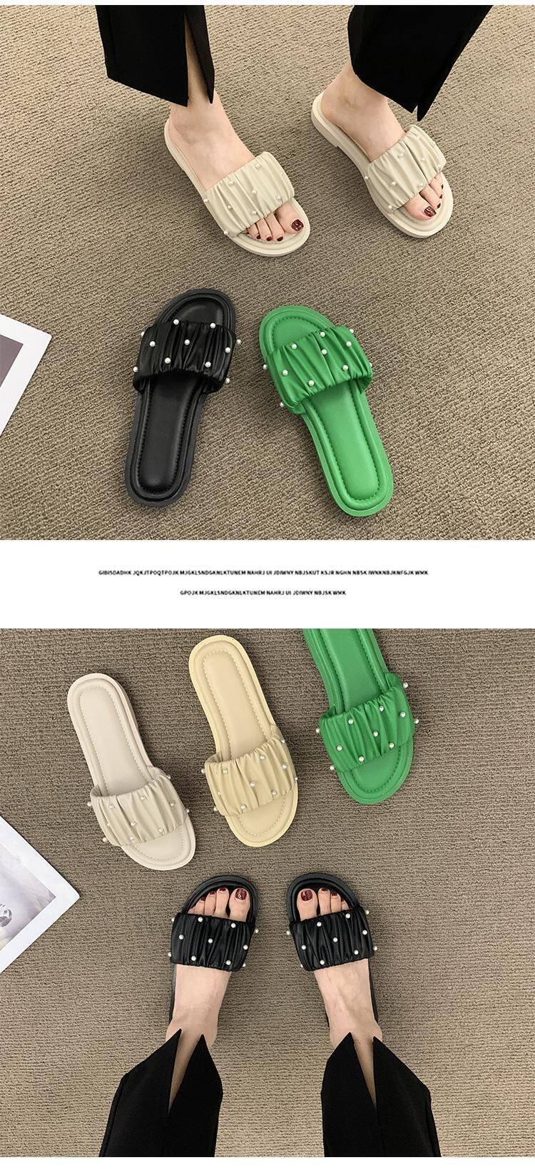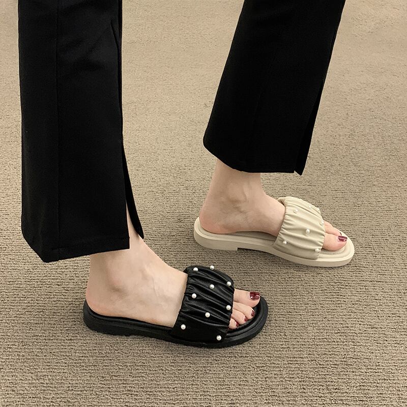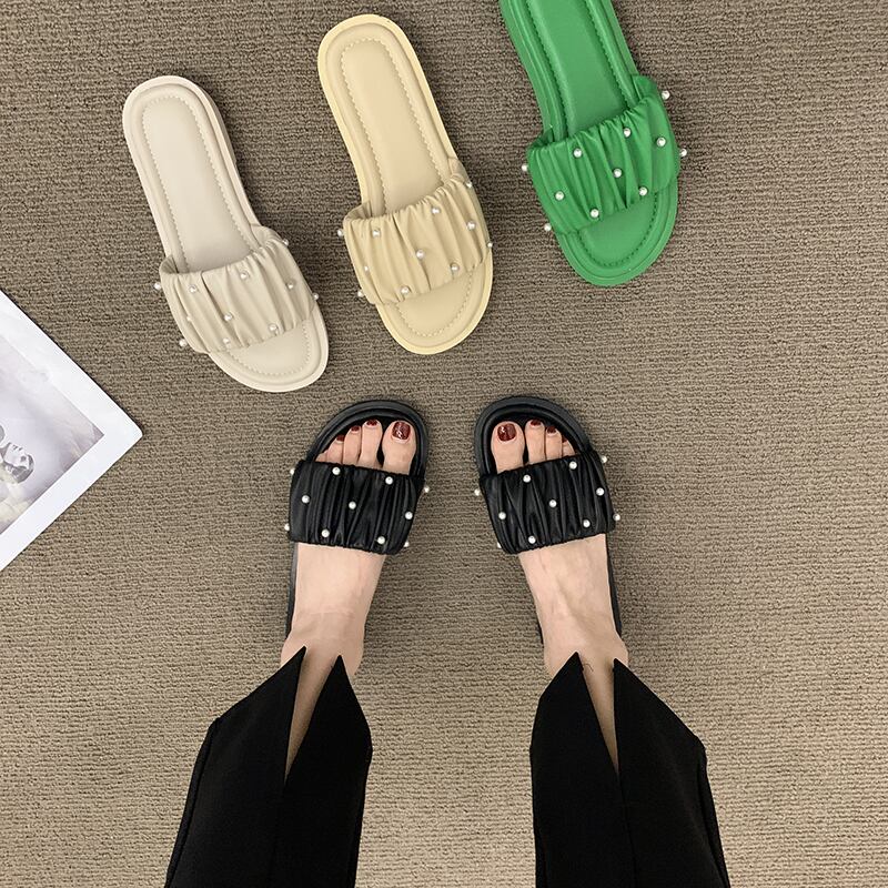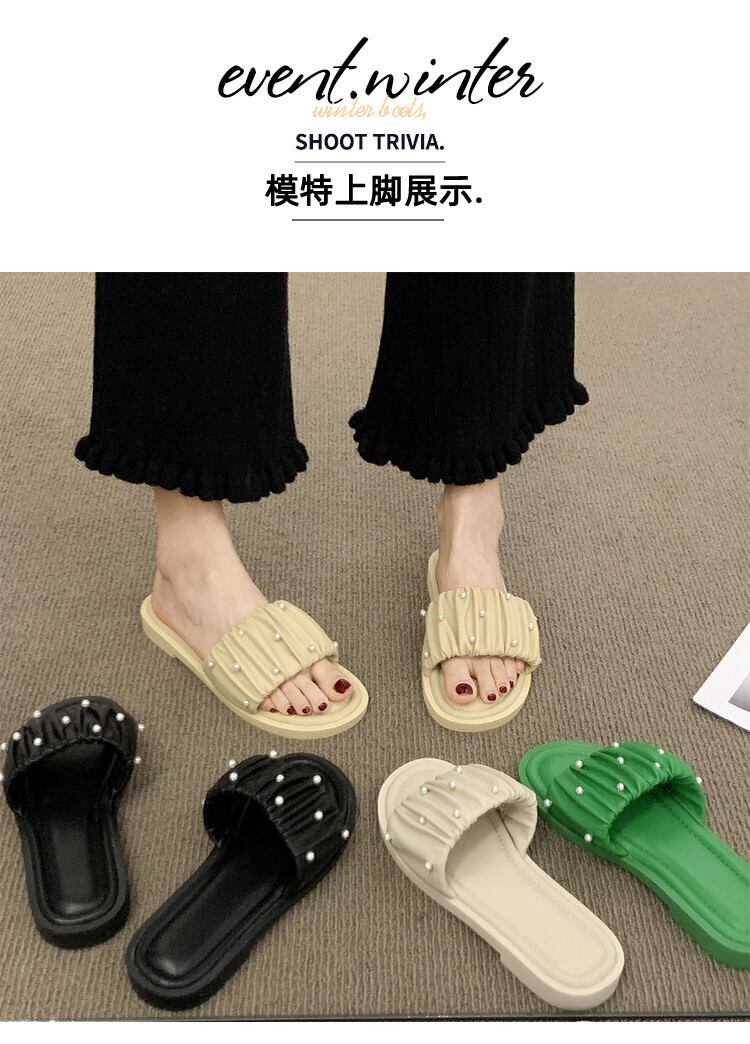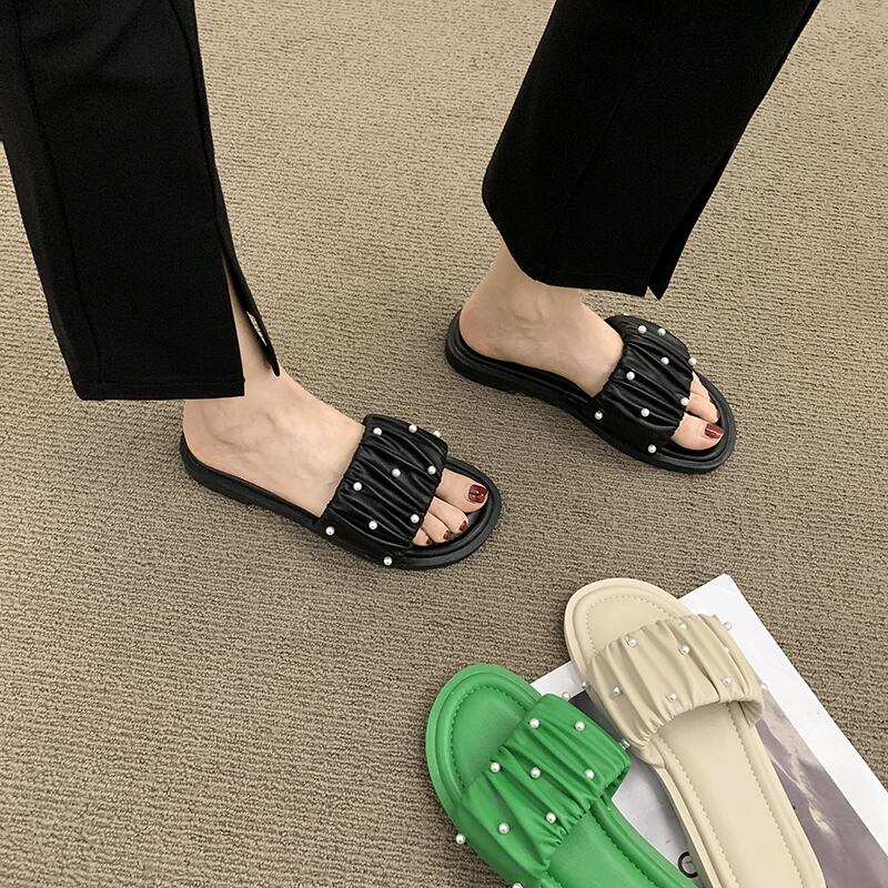 アウターウェアスリッパレディース2022夏新作ファッションオールマッチレトロパール平底ノンスリップ一言サンダルとスリッパタイド ミュール 靴 シューズ サマー 夏物 スリッポン 真珠 jxjxf56435301198