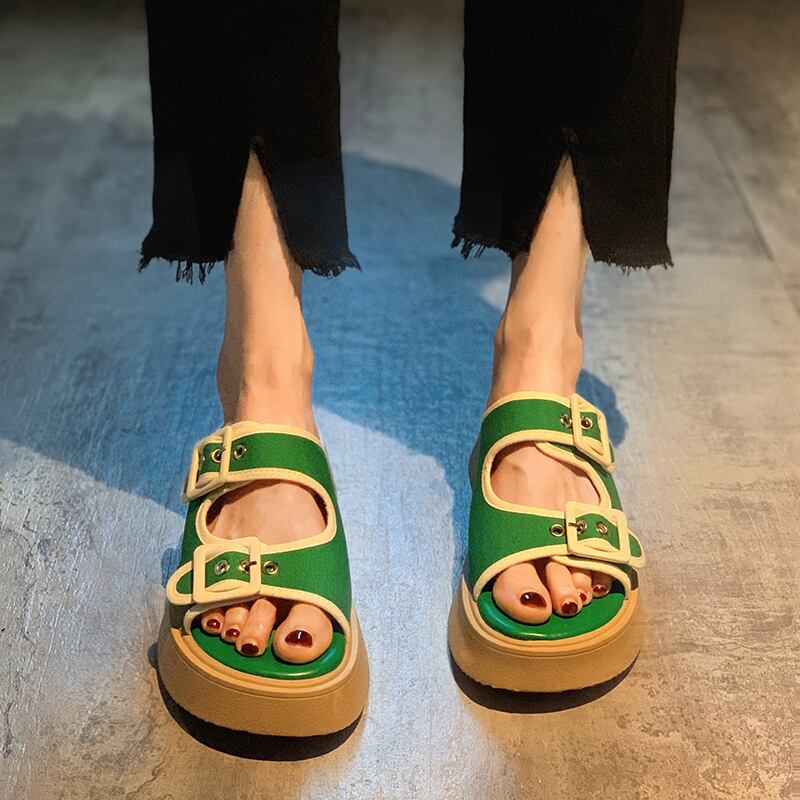 女性の2022年夏の新しいスタイルのベルトバックル厚底滑り止めネットレッドファッションオールマッチカジュアルサンダルとスリッパ ミュール 靴 シューズ サマー 夏物 ハーネス jxjxf84635667373