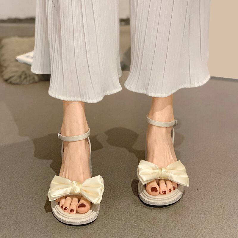 フェアリースタイルのハイヒールの女性の2022年夏の新しい弓の厚いヒールの滑り止めのファッションオールマッチ優しいレトロなサンダル リボン 靴 シューズ サマー 夏物 jxjxf11087293912