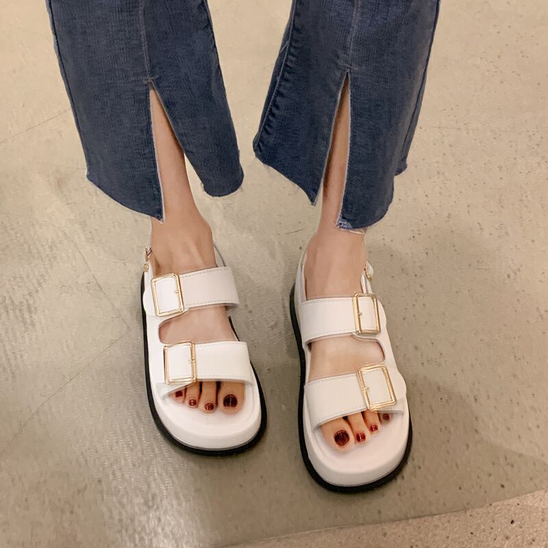 サンダル女性の潮汐2022年夏の新しいファッションレトロベルトバックル学生厚底滑り止めカジュアルビーチシューズ 靴 サマー 夏物 ハーネス jxjxf7631298020