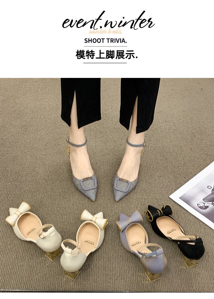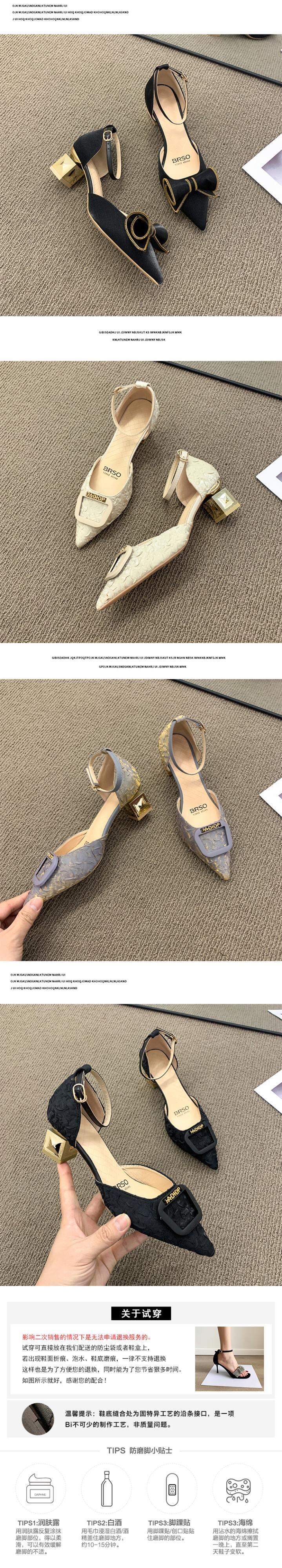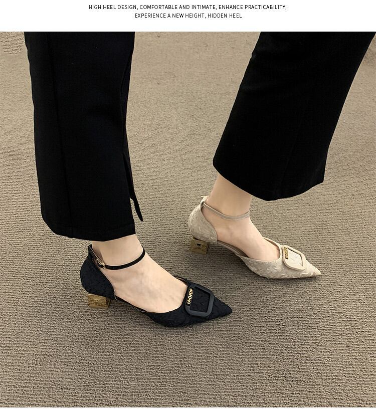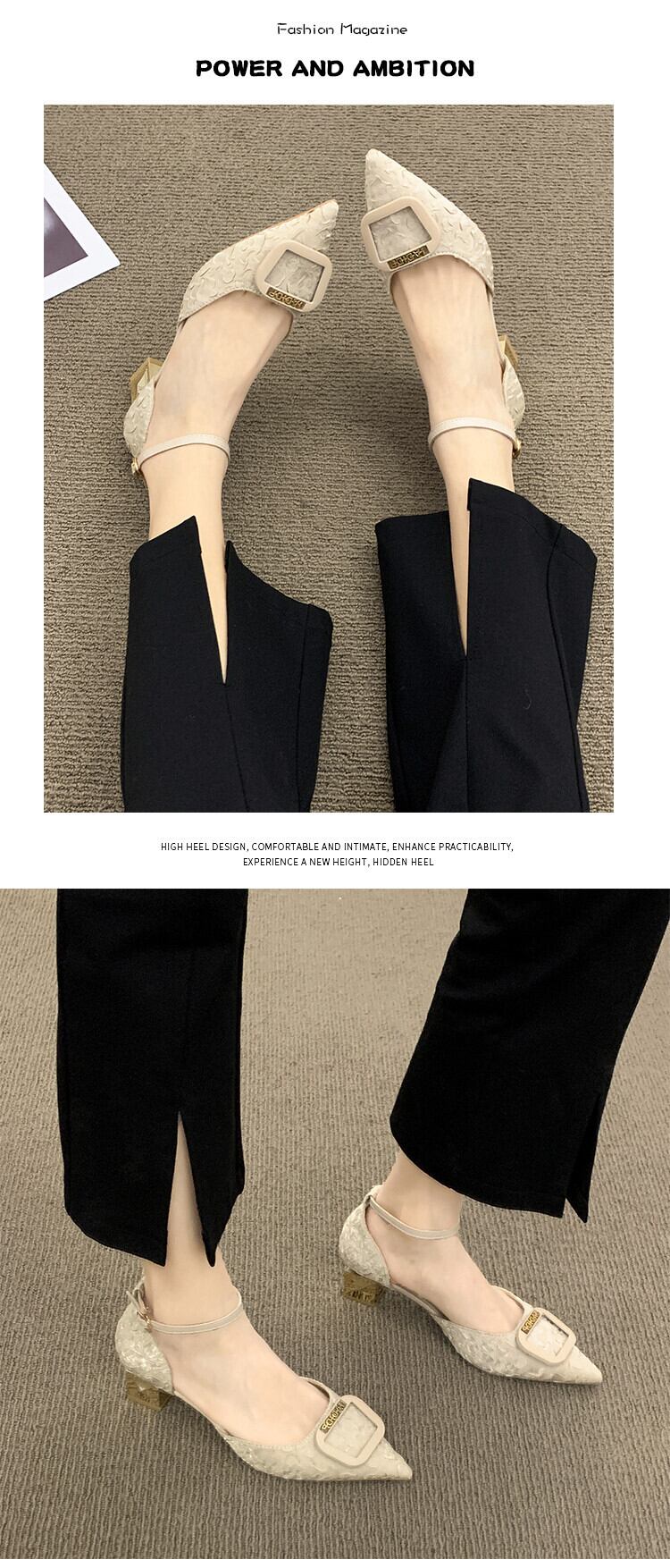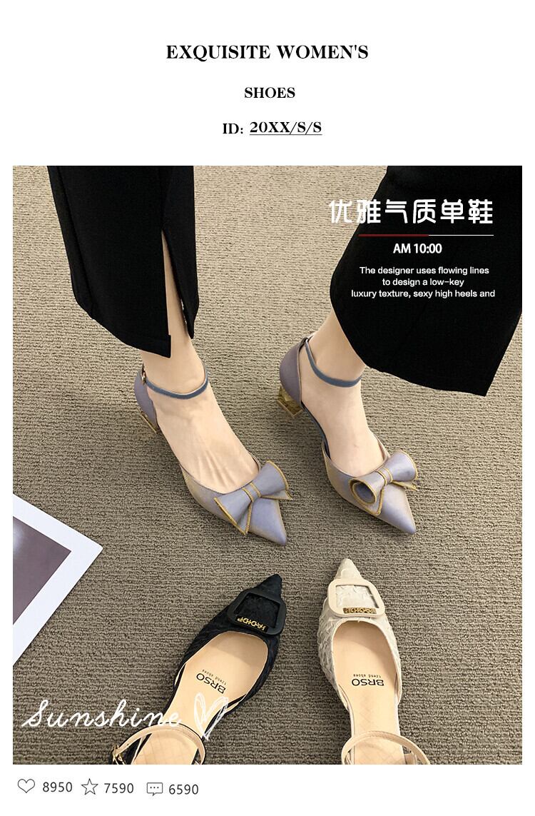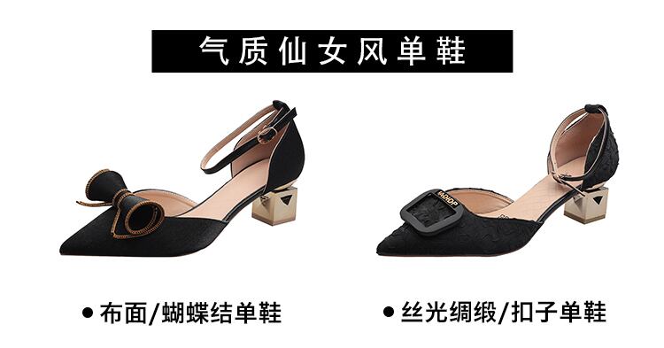 かかと女性の2022年春新しいとがったつま先浅い口厚いかかと滑り止めファッションオールマッチ妖精スタイルのレトロな靴 シューズ ヒール スプリング 春物 jxjxf67934322225