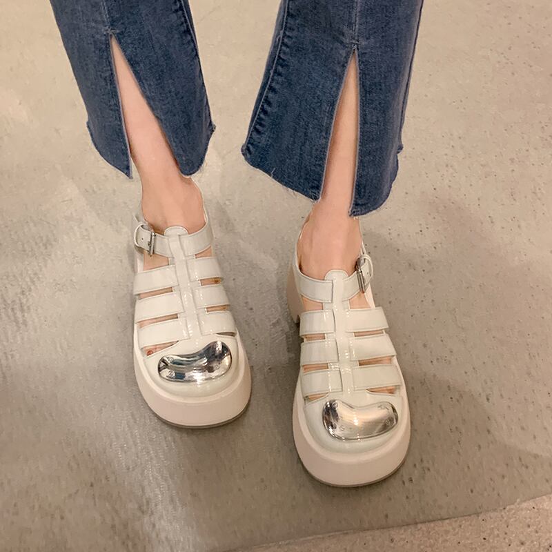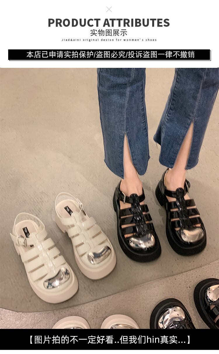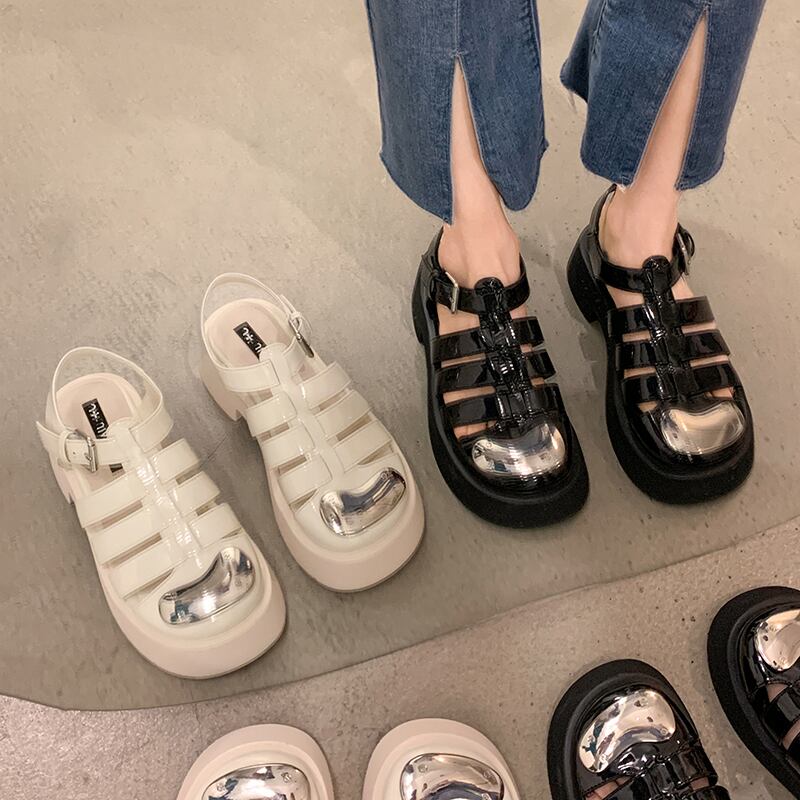 Baotouサンダル女性の2022年夏の新しいファッションオールマッチレトロメタルベルトバックル厚手のヒール滑り止めビーチシューズ 靴 サマー 夏物 ハーネス jxjxf64375846796