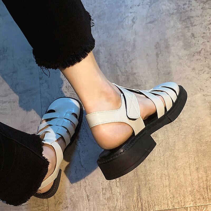 包頭サンダルレディース2022サマーベルクロフラットボトム滑り止めネットレッド多用途レトロローマシューズ 靴 夏物 jxjxf20529855152