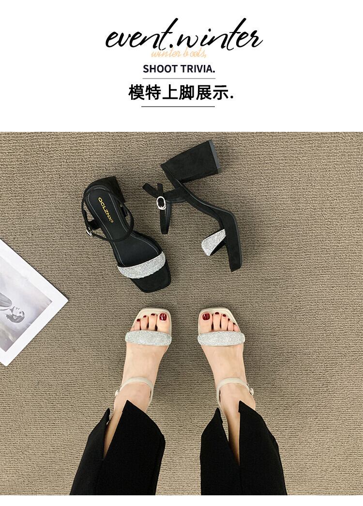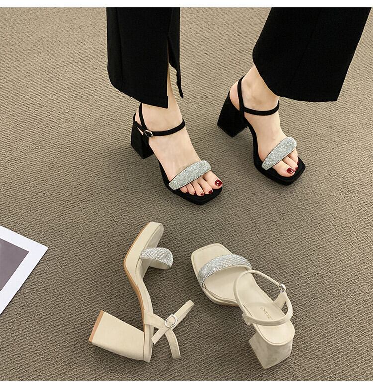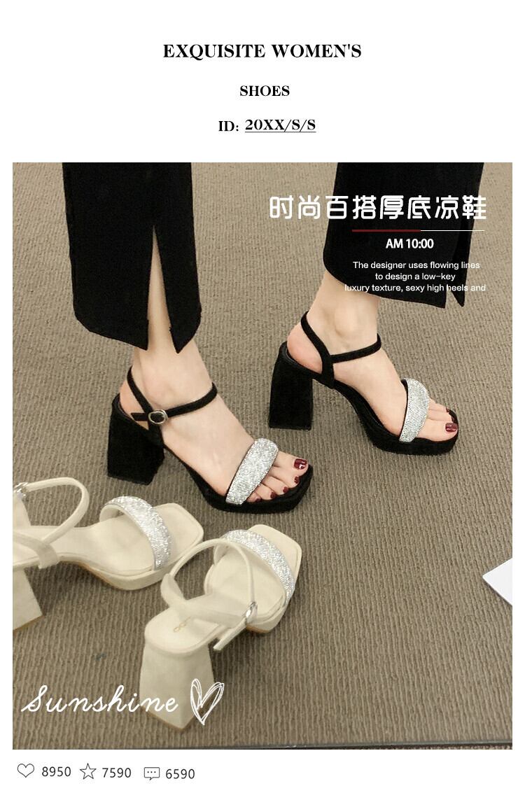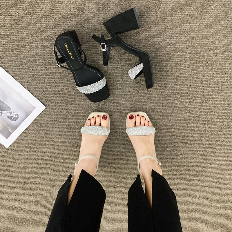 サンダル2022女性の新しい夏のファッションオールマッチ小さなラインストーン厚いヒール滑り止めの妖精スタイルのハイヒールの潮 靴 シューズ サマー 夏物 jxjxf22411001477