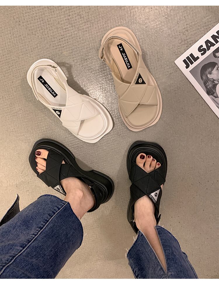 ビーチサンダル女性の2022年夏の新しいクロス厚いヒール滑り止めファッションオールマッチ小さな織りローマの靴 シューズ サマー 夏物 jxjxf3063620359