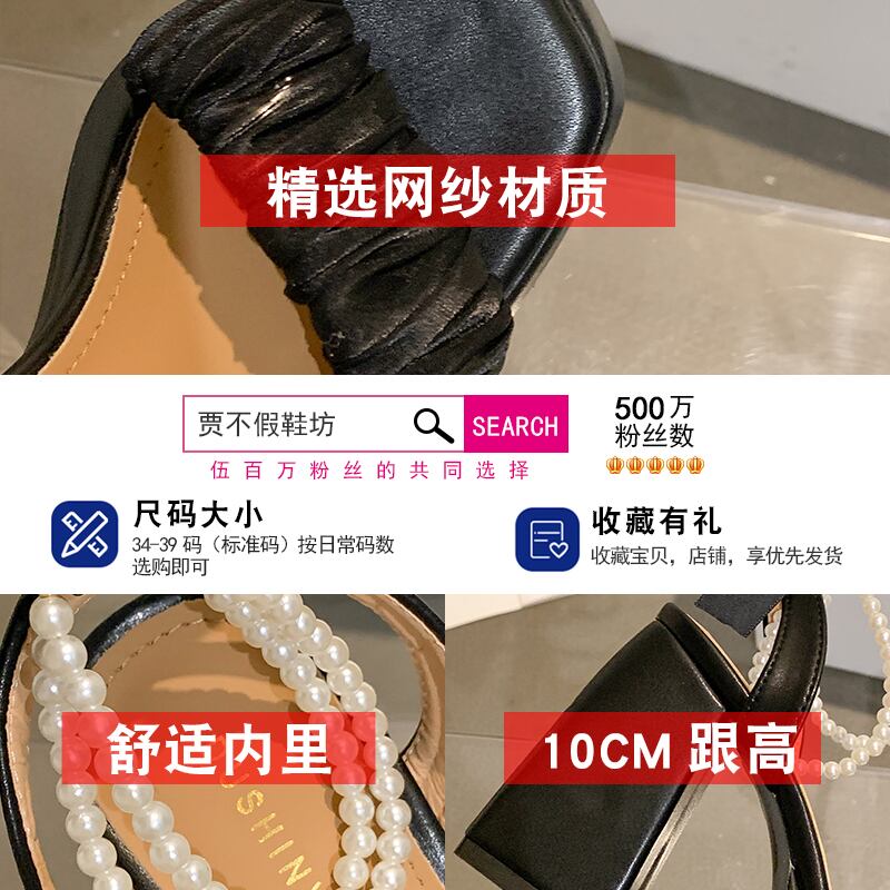 ジアブーフェイクサンダル女性の2022年夏の新しいファッションパールレース小さな厚いヒール滑り止めハイヒール 靴 シューズ サマー 夏物 真珠 jxjxf17905649740