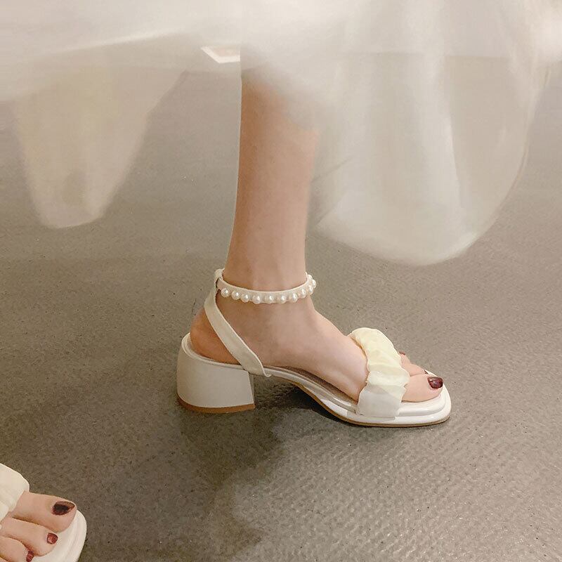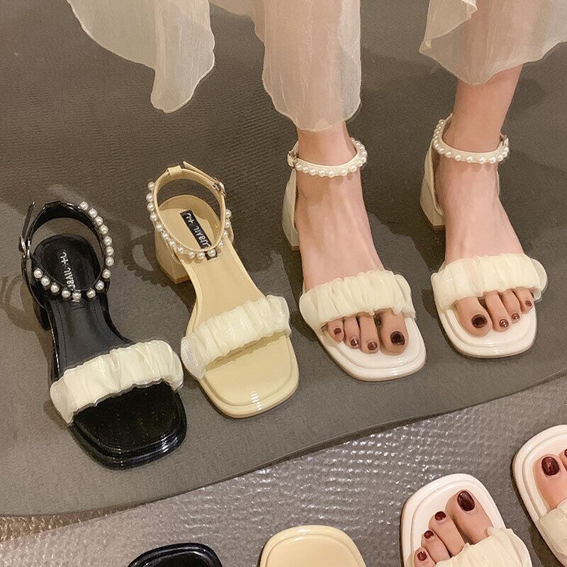 一言ベルトサンダルレディース2022夏ニューパールシックヒールノンスリップファッションオールマッチフェアリースタイルレトロローマシューズ 靴 サマー 夏物 ハーネス 真珠 jxjxf58567805891