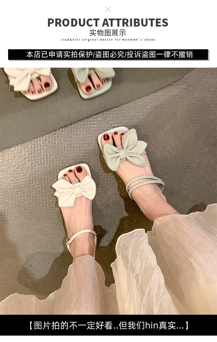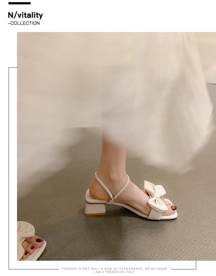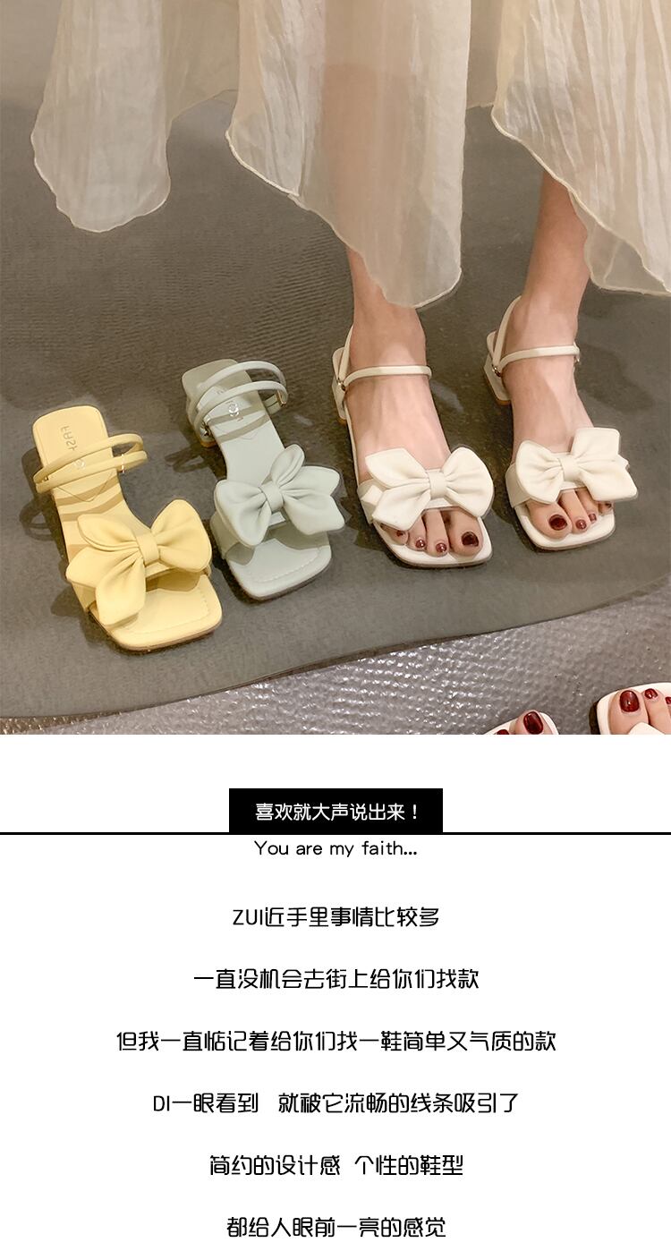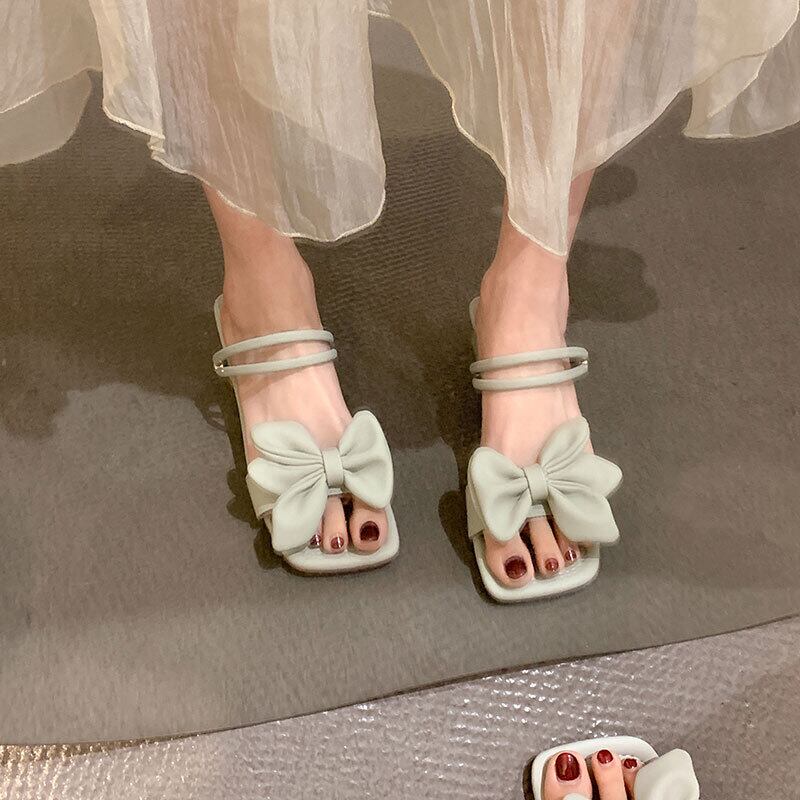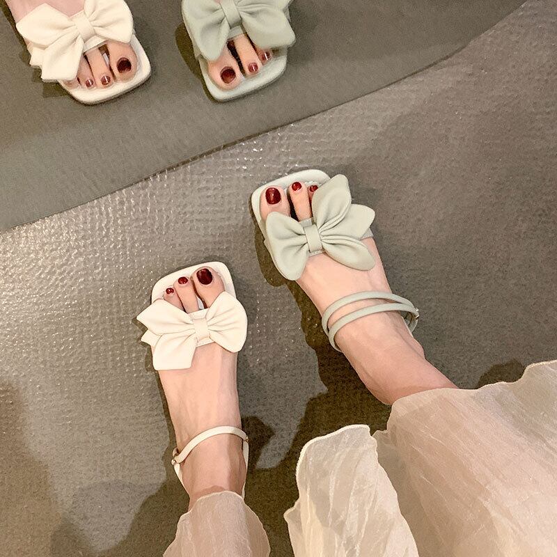 スリッパ女性の2022年夏の新しいスタイルの弓の厚いかかと滑り止めのファッションオールマッチ穏やかなツーピースのビーチサンダル リボン ヒール 靴 シューズ ミュール サマー 夏物 jxjxf66507113458