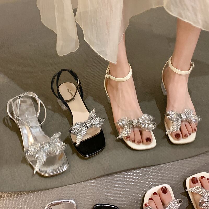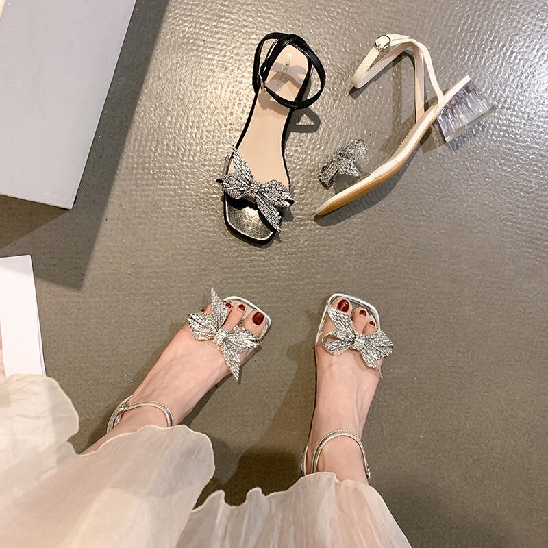 サンダルレディース2022夏の新しいラインストーンの弓クリスタルヒール滑り止めファッションオールマッチフェアリースタイルのローマの靴 シューズ リボン サマー 夏物 jxjxf28887811605