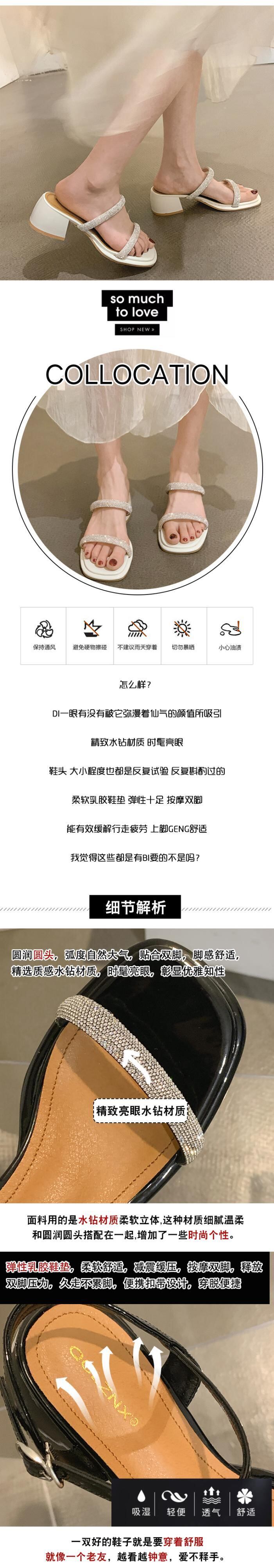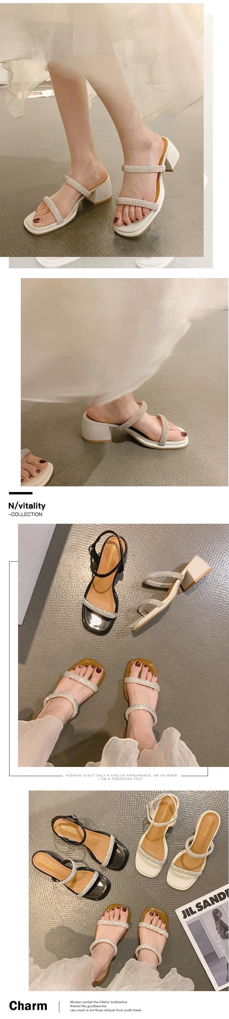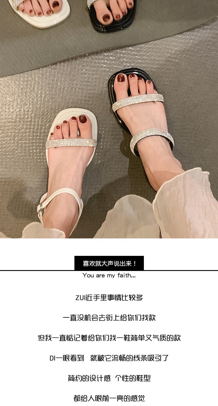 ニッチサンダルレディース2022年夏の新しいラインストーンの厚いヒールフランスのスーパーファイアオールマッチフェアリースタイルのローマのサンダルとスリッパ 靴 シューズ ミュール サマー 夏物 jxjxf28708824154