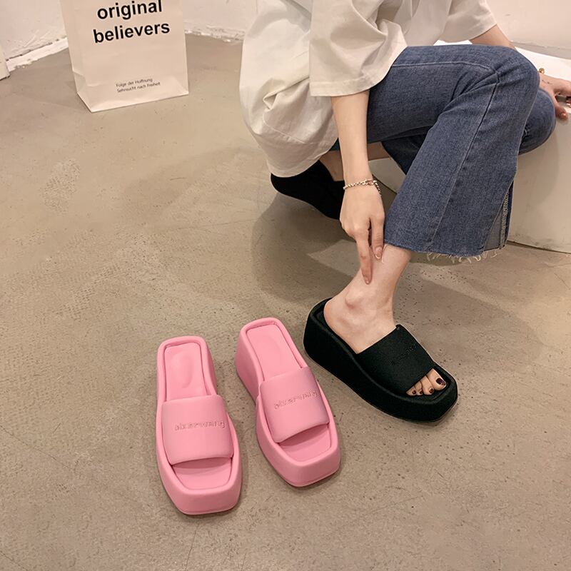 夏のスリッパ女性の2022年の新しいアウターウェアネットレッドスーパーオールマッチ小さな厚いボトムウェッジヒール滑り止めサンダルとスリッパ ミュール 靴 シューズ サマー 夏物 jxjxf8883293000