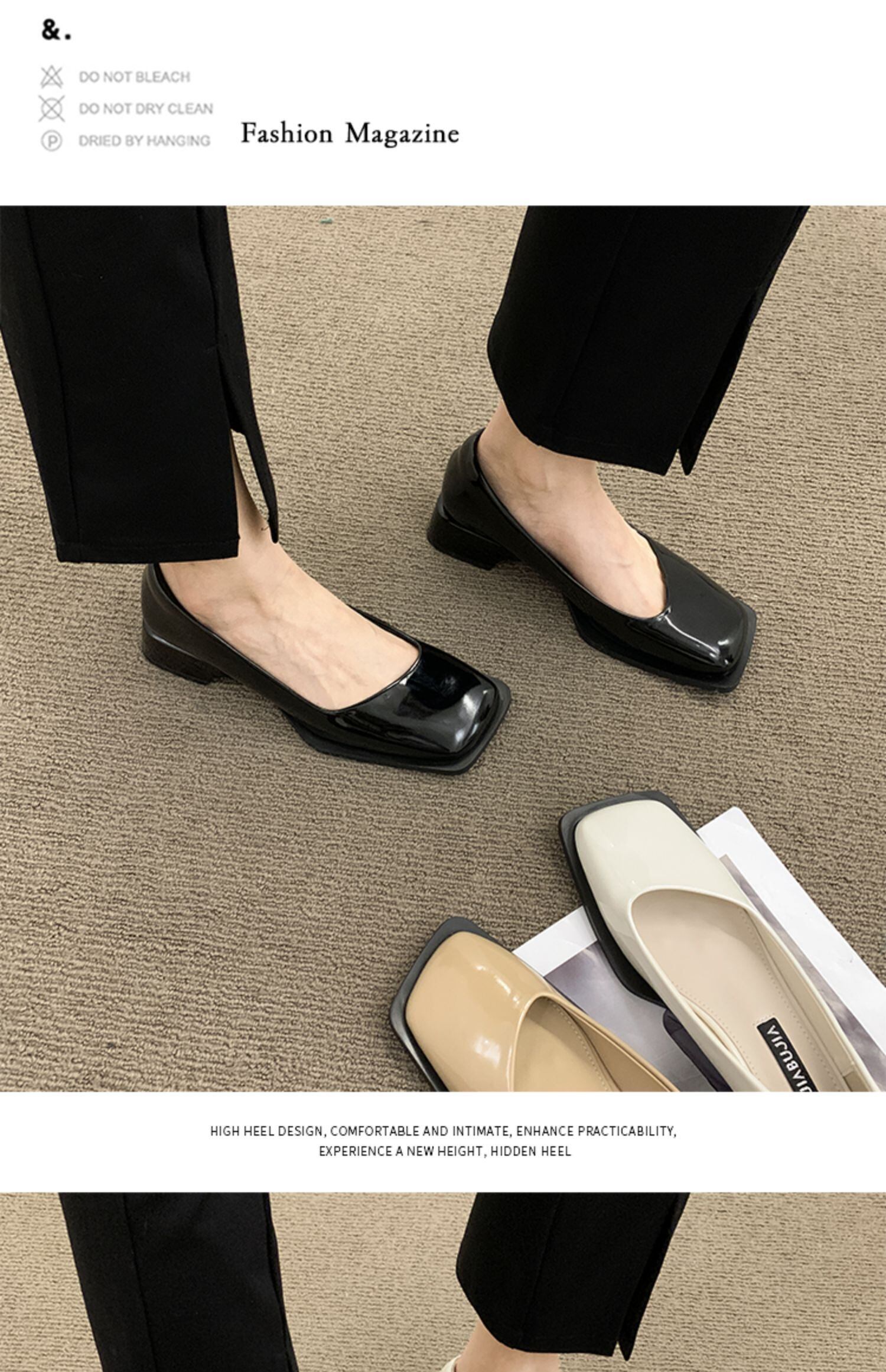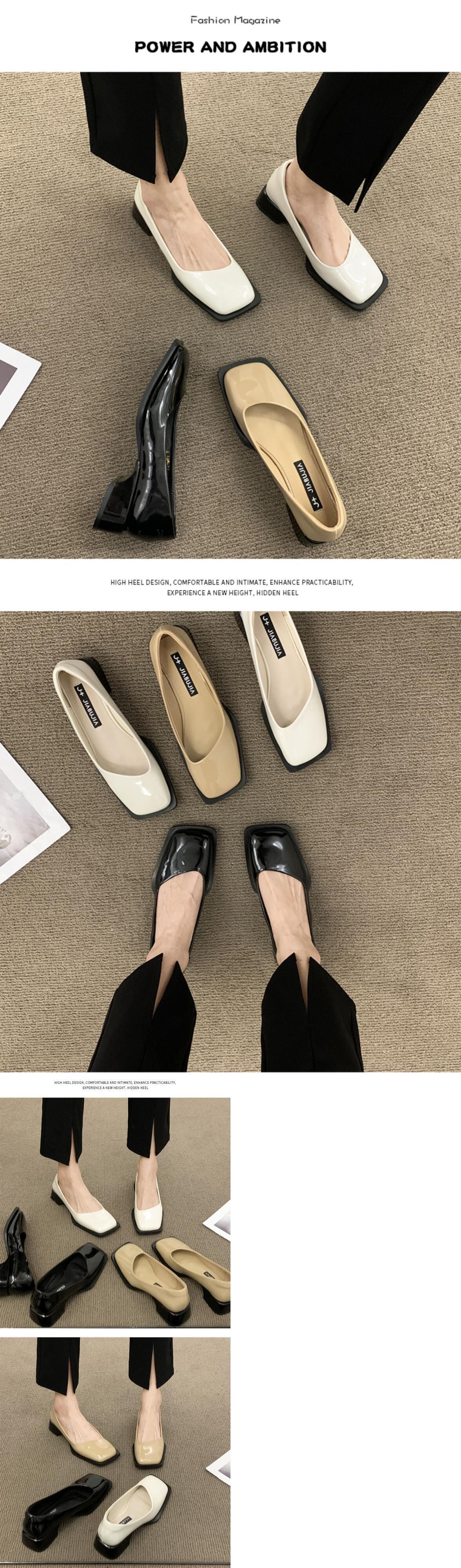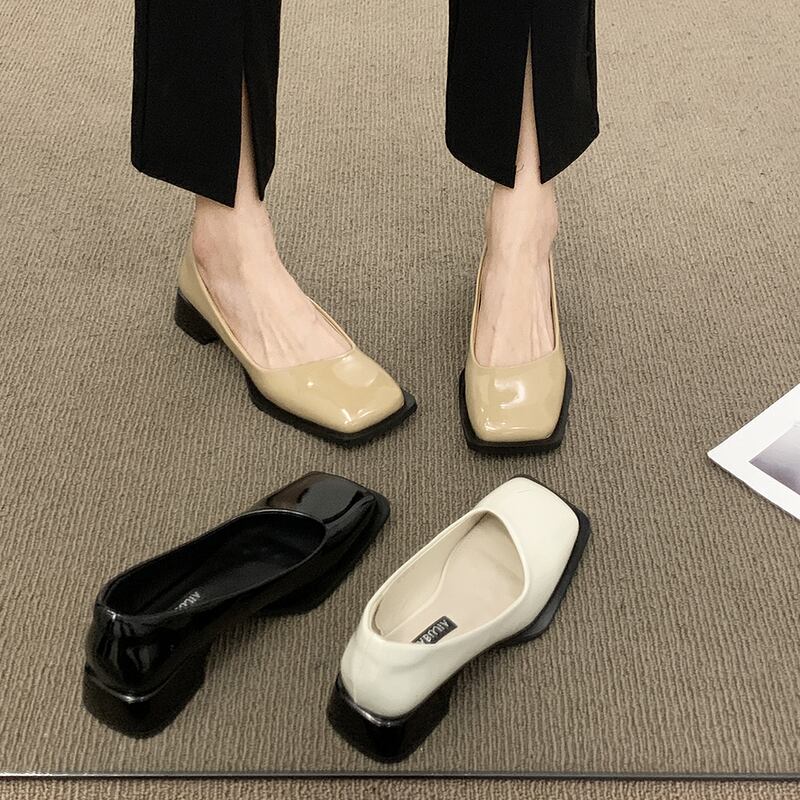 小さな革の靴女性の2022年夏の新しいスクエアトゥローヒール滑り止めスクープシューズファッションイブニングウィンドオールマッチ優しいレトロシングルシューズ サマー 夏物 レザー スクウェア jxjxf910632796